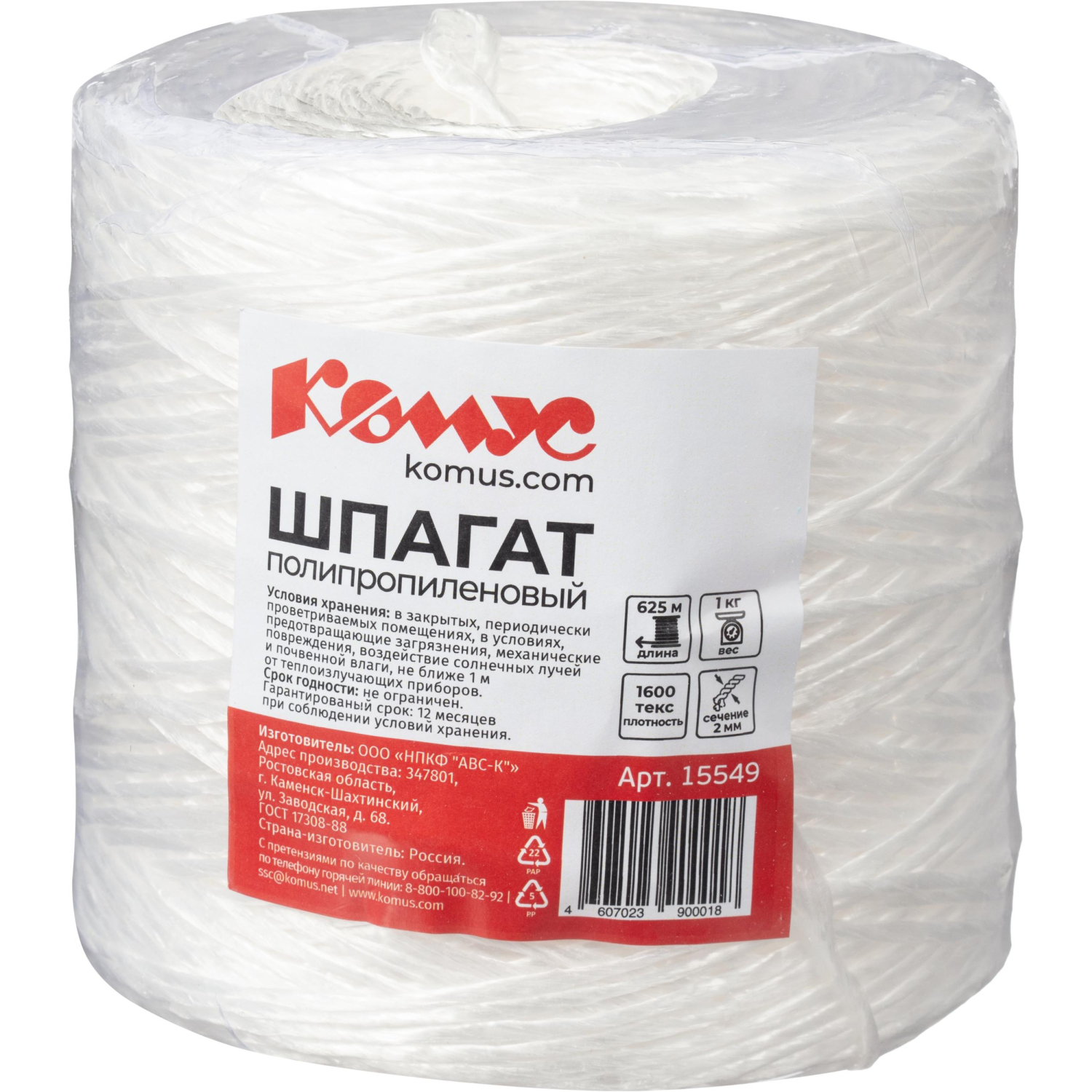Полипропиленовый шпагат с крученой структурой с плотностью в 1,6 кТекс. Поставляется в бобине, вес которой около 1 кг. Толщина шпагата 2 мм. Предназначен для нагрузок до 80 кг на сантиметр. Длина шпагата в бобине в среднем составляет 625 м. Цвет шпагата — белый. Имеет хозяйственно-бытовое предназначение. Шпагат соответствует ГОСТу 17308-88.
