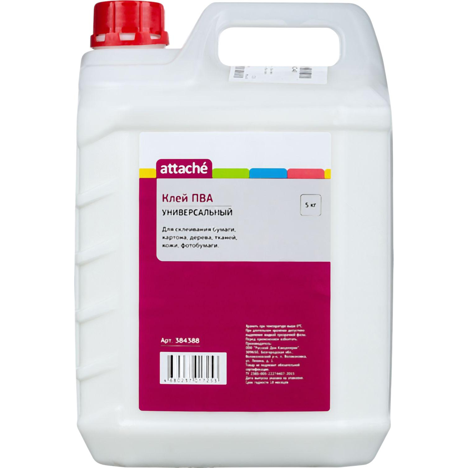 Клей ПВА Attache предназначен для склеивания бумаги, картона, дерева, ткани, кожи, фотобумаги. Отлично подходит для хобби и творчества для взрослых и детей. Пластиковый дозатор обеспечивает точное нанесение и экономный расход. Имеется съемный колпачок, который предохраняет клей от засыхания.Объем клея 5000 г (4948,7 мл).Клей ПВА при минусовых температурах замерзает, т.к. сделан на основе воды, но при оттаивании не теряет своих свойств. Его можно заморозить и размораживать 5 раз, и он не потеряет ни своих свойств, ни товарного вида. Температура воздуха при использовании не ниже +5. Необходимо взболтать перед применением. Большой объем позволит надолго обеспечить сотрудников необходимым товаром, и сэкономить офисный бюджет.