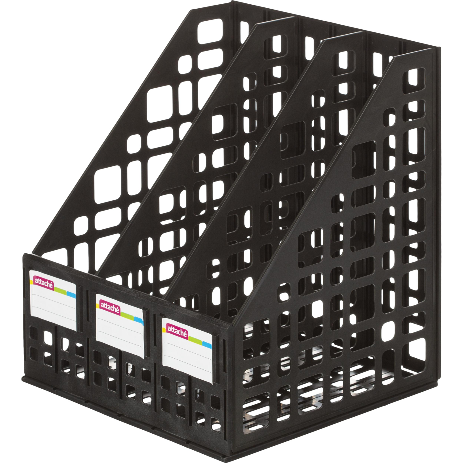 Вертикальный накопитель Attache имеет 3 отделения. Легкий и прочный даже при загрузке документами. Удобен при транспортировке и хранении. Накопитель имеет сборно-разборную конструкцию. Сетчатая поверхность. Цвет черный. Ширина основания 240 мм. В комплекте есть этикетки для маркировки.