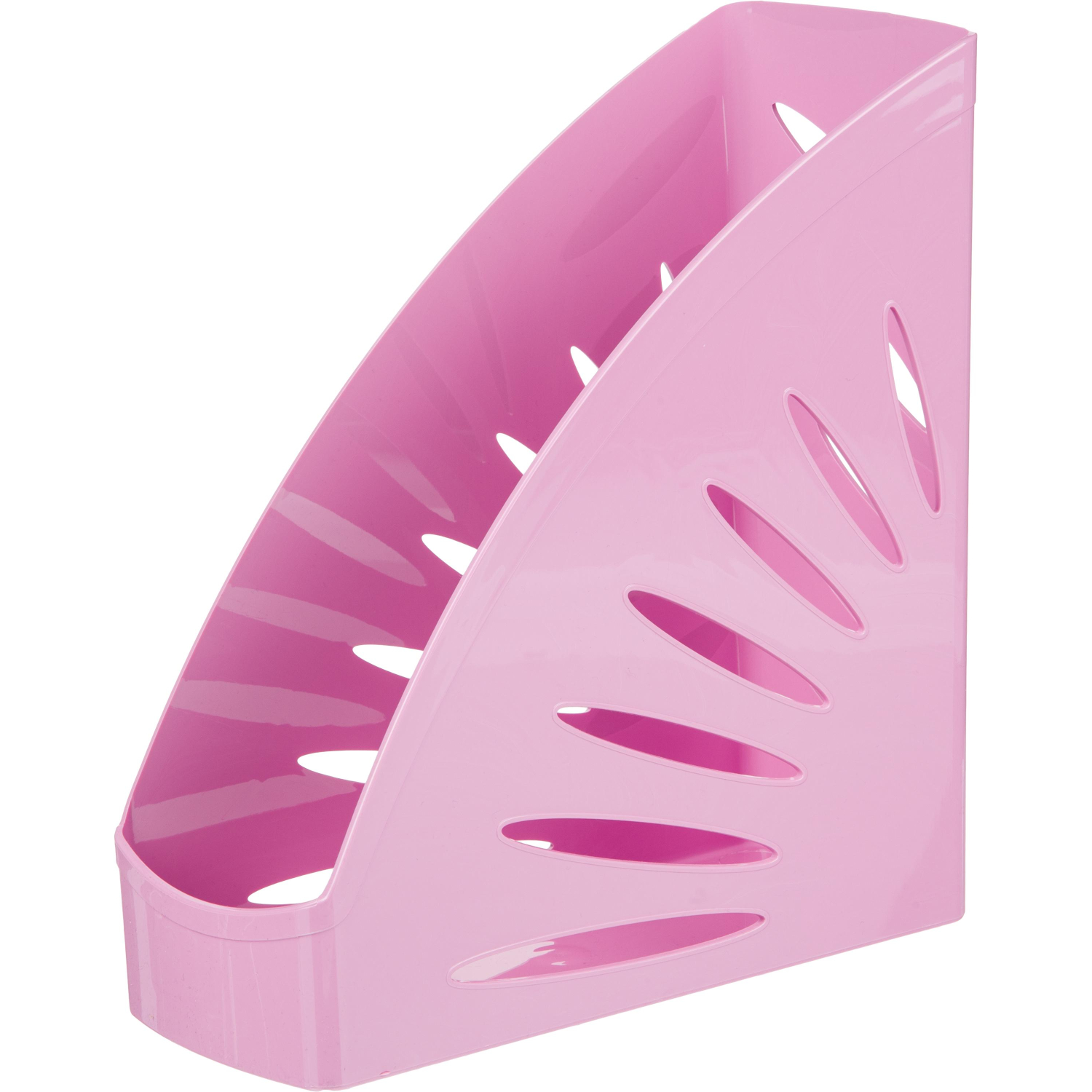 Лоток вертикальный для бумаг формата А4, одно отделение. Имеет комбинированную поверхность — глянцевую и матовую. Изготовлен из качественного полистирола. Подходит для хранения тяжелых каталогов и папок. На торце лотка есть захват для удобного вытягивания с полки. Захват также служит окном для маркировки, предусматривающим возможность смены вкладышей. Цвет лотка — розовый. Размеры (ВхШхГ): 285×110×265 мм.
