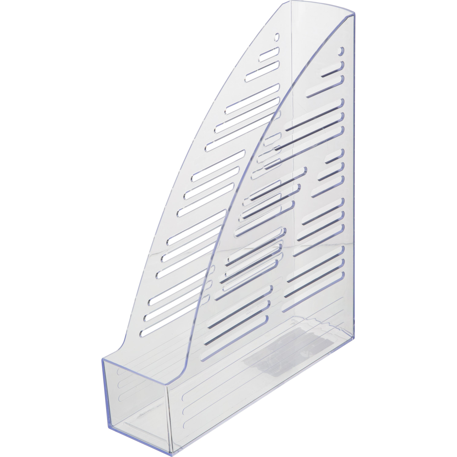 Лоток вертикальный для бумаг формата А4, одно отделение. Устойчивый, вместительный, прочный корпус. Изготовлен из качественного полистирола. Цвет лотка — прозрачный. Размеры (ВxШxГ): 300×70×250 мм.