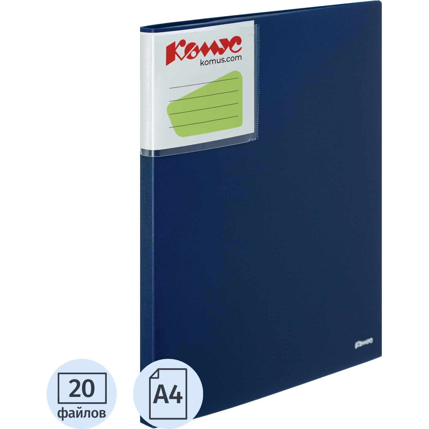 Папка с файлами Комус из коллекции ’Шелк’ выполнена из пластика синего цвета толщиной 0,7 мм. Имеет 20 прозрачных файлов для хранения и демонстрации документов. На корешке предусмотрен прозрачный карман с вкладышем для маркировки, на внутренней стороне створки — дополнительный карман для записок, сим-карт, компакт-дисков. Файловая папка вмещает до 40 листов формата А4. Плотность файлов 35 мкм. В рамках ребрендинга производится перевод дизайна данного артикула с сохранением всех потребительских характеристик товара. На переходный период допускается поставка данной продукции в двух вариантах дизайна.