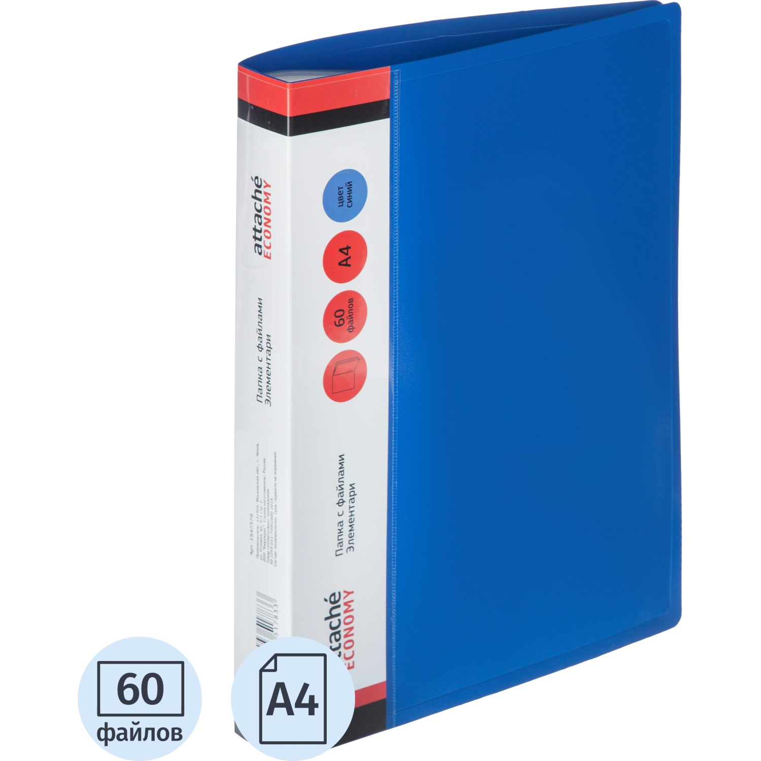 Папка файловая 60 файлов, карман/кор Attache Economy Элемент А4 700мкм син