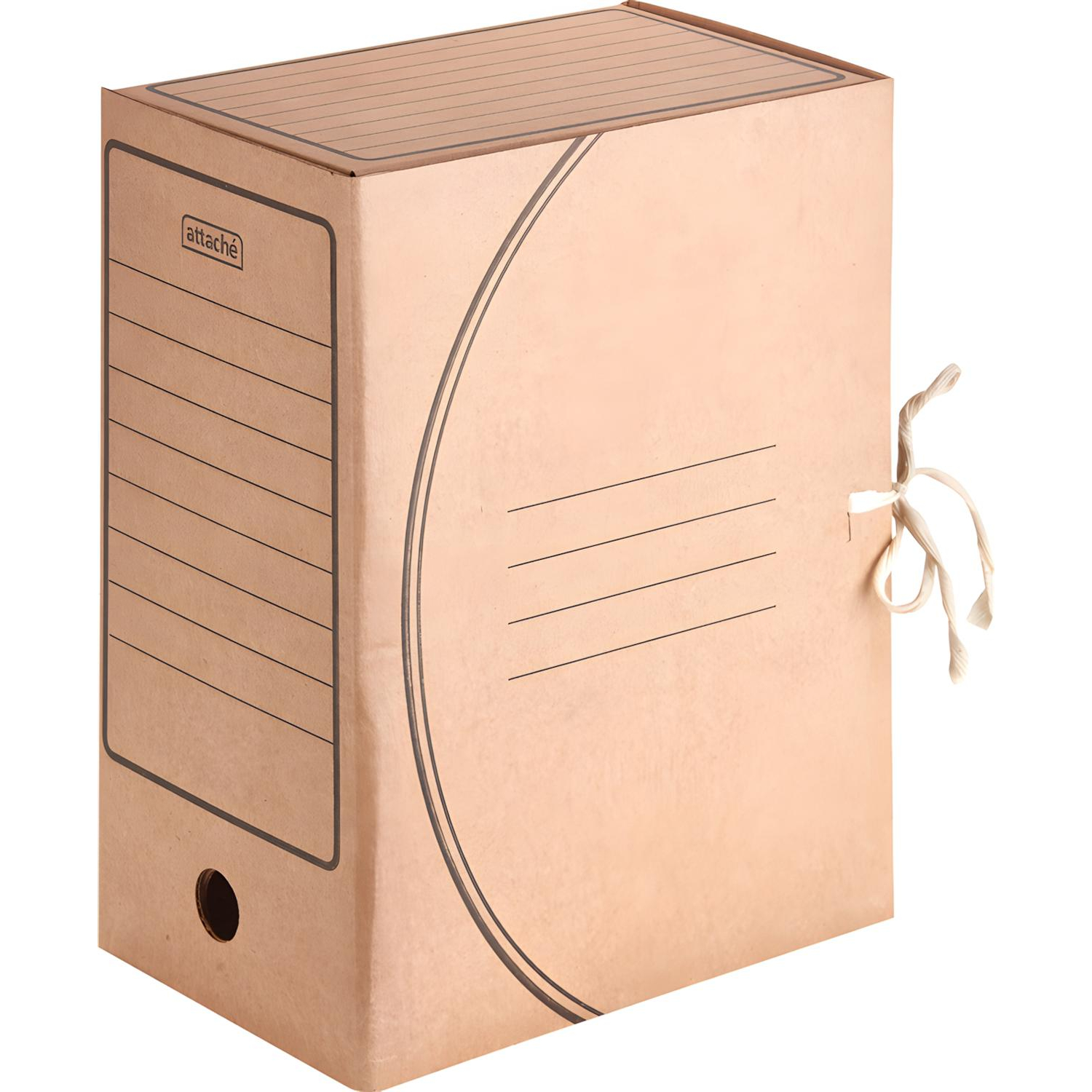 Короб архивный на 2-х завязках Attache (Attache Economy) 150 мм гофрокартон бурый до 1500 листов 5 шт/упКороб архивный Attache (Attache Economy) изготовлен из гофрокартона Т22 (профиль В) бурого цвета. Толщина корешка — 150 мм. На всех гранях есть поля для маркировки. Крышка короба фиксируется на завязках. Предназначен для краткосрочного хранения документов. Архивный короб вмещает 1500 листов стандартной плотности. Внешний размер: 240×150×320 мм. Внутренний размер: 228×138×314 мм. Поставляется в разобранном виде. В упаковке 5 штук. Гофрокартон — экологически чистый и пригодный для переработки материал.В рамках ребрендинга производится перевод данного артикула из ТМ Attache Economy в ТМ Attache с сохранением всех потребительских свойств товара. Во время переходного периода допускается поставка данной продукции в двух вариантах дизайна упаковки.