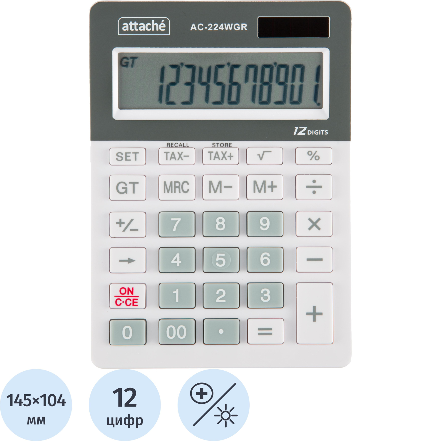 Калькулятор настольный КОМП Attache,AС-224WGR,12р,дв.пит,бел-сер,145x104x28