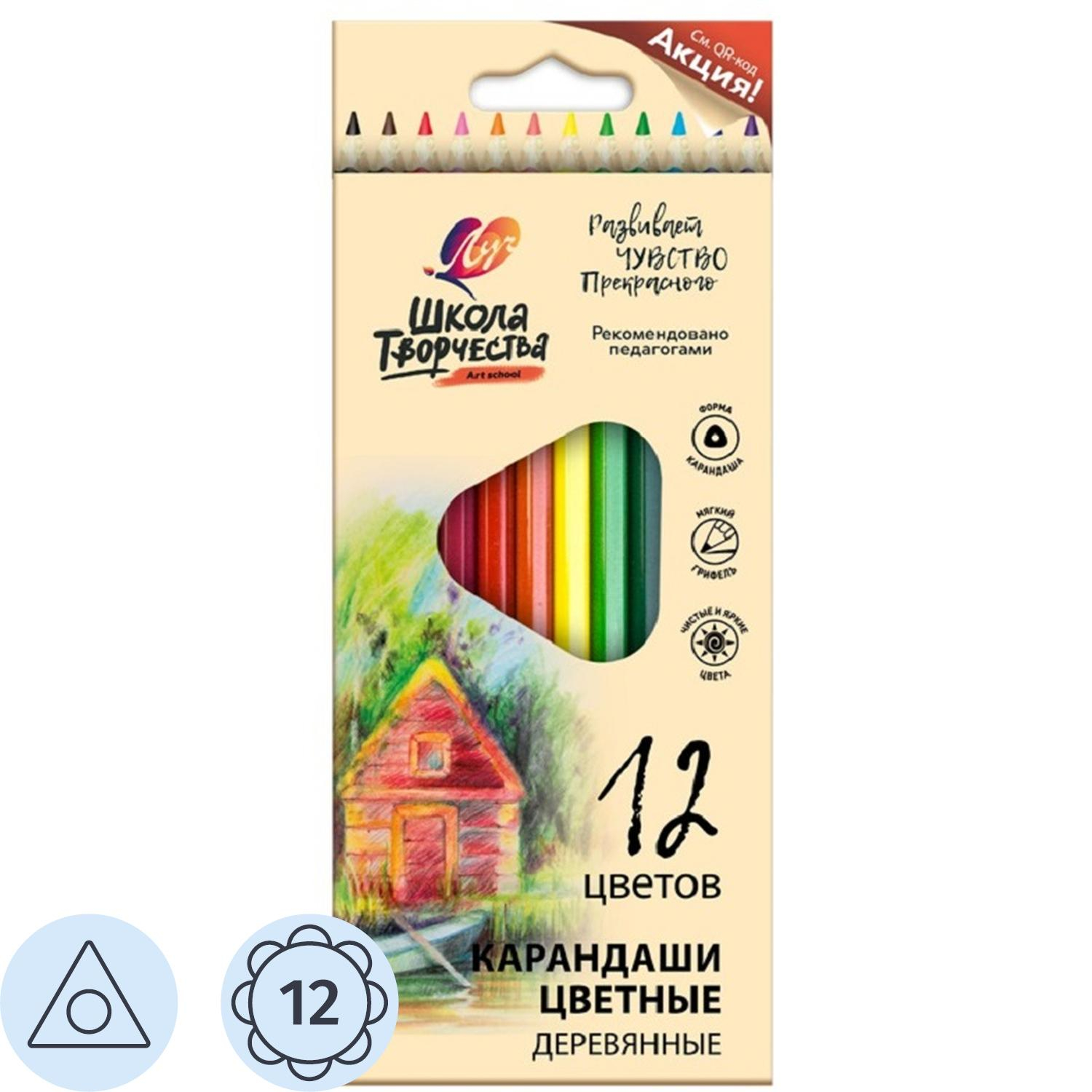 Карандаши цветные Луч Школа Творчества 12 карандашей 12 цветов трёхгранные Набор цветных карандашей серии Школа творчества торговой марки Луч предназначен для рисования на бумаге и картоне. Применяется детьми от 3 лет и старше. В наборе 12 цветов. Карандаши с треугольным деревянным корпусом из мягкой древесины тополя. Длина корпуса: 175 мм. Диаметр грифеля: 3 мм. Упакованы в картонную коробку с европодвесом размером 86×8x178 мм. Карандаши легко затачиваются, не ломаются при падении. Грифель прочный, выдерживает хороший нажим, не крошится и пишет мягко. Треугольная форма предотвращает скатывание со стола. Яркие и чистые цвета способствуют развитию творческого мышления. Корпус из высококачественной древесины обеспечивает долговечность. Рекомендуется хранение в закрытых сухих помещениях, защищённых от прямых солнечных лучей и на расстоянии не менее 1 м от приборов отопления. Грифели предварительно заточены. Набор подходит для выполнения разнообразных рисунков и письма. Идеально для учебных занятий и творчества.