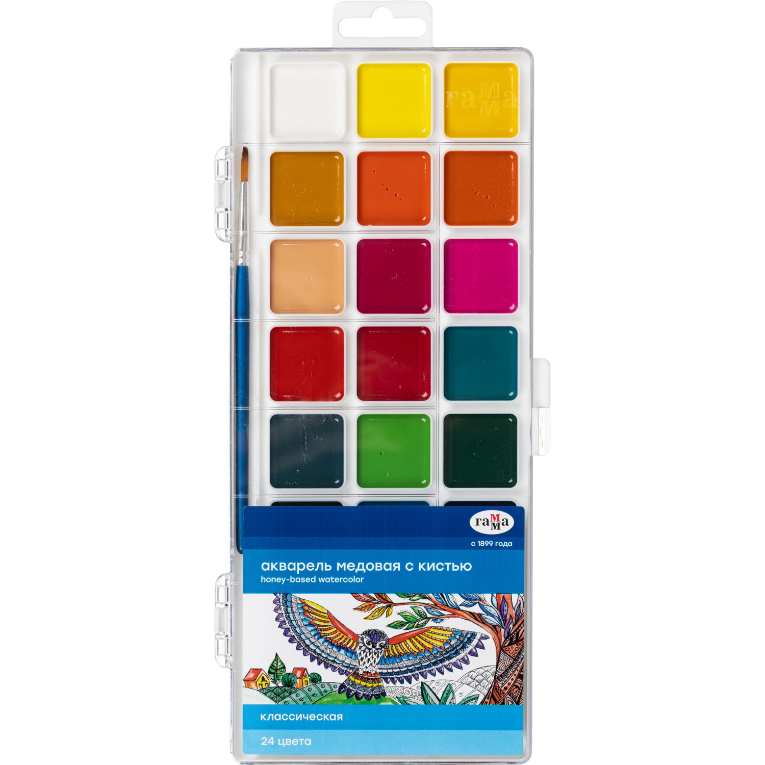 Краски акварельные Гамма Классическая,медов,Наб.24цв,с кистью,пласт 1009203