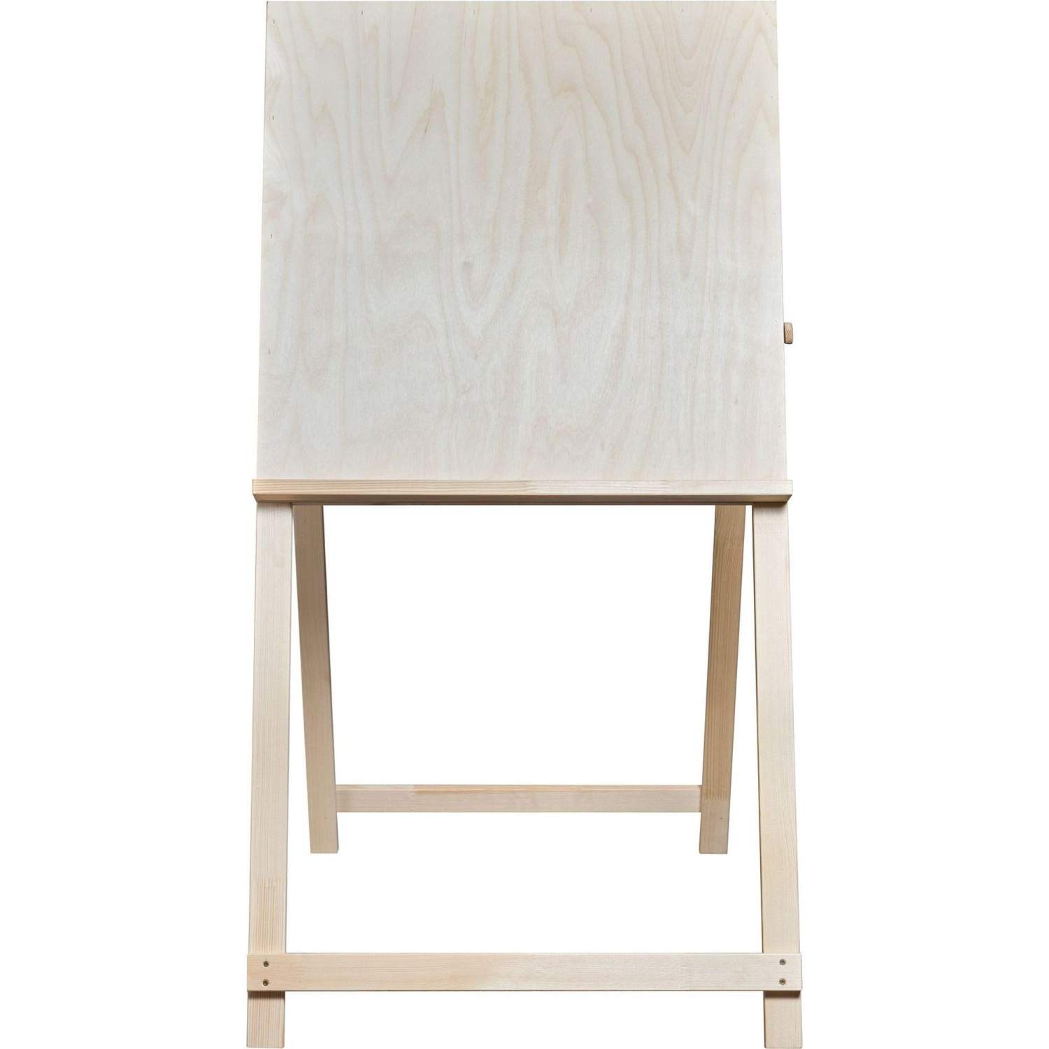 Ученический мольберт-хлопушка двусторонняя. Подходит для длительных эскизных работ сидя, для работы с акварелью. Мольберт легко складывается и не требует много места для хранения, очень удобен для небольших студий. Для работы предусмотрено две поверхности из березовой фанеры: лист бумаги или картона может быть зафиксирован на рабочей поверхности с помощью канцелярских кнопок или двустороннего скотча.Размер каждой рабочей поверхности 60×60 см. 4 положения угла наклона рабочей поверхности.Общая высота мольберта — 120 см.