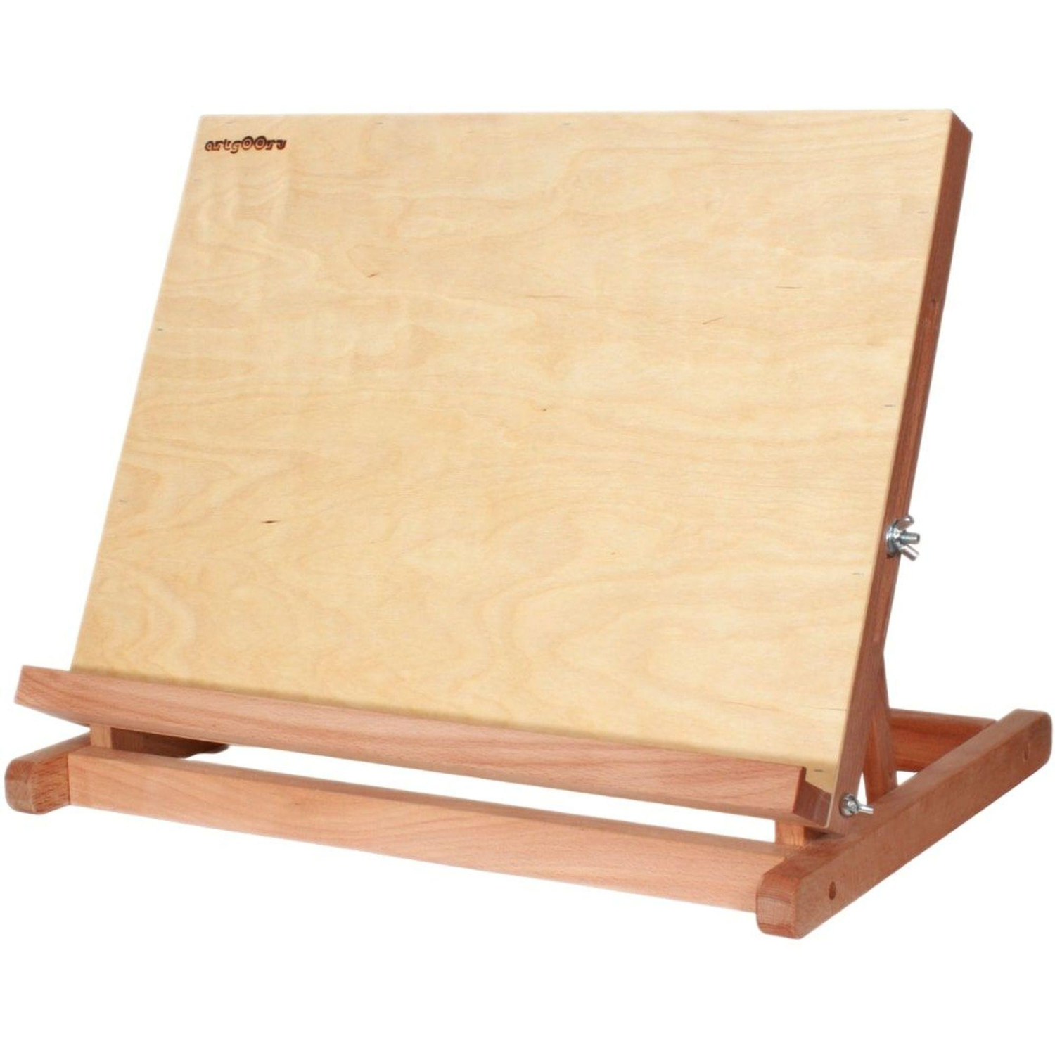 Мольберт настольный серии ARG-15 компании «Туюкан».Небольшой настольный мольберт с фанерным планшетом. Предназначен для эскизных работ на бумаге и картоне, а так же для демонстрации картин, фотографий, рисунков и багетов.Мольберт изготовлен из высококачественного бука, который покрыт специальным защитным составом.Основа планшета — березовая фанера.Размер планшета — 34.5×46.5 см.Выдерживает вес до 3 кг.Дополнительные характеристики:— размер основания: 47.5×33 см;— особенности: мольберт — планшет с регулируемым наклоном.