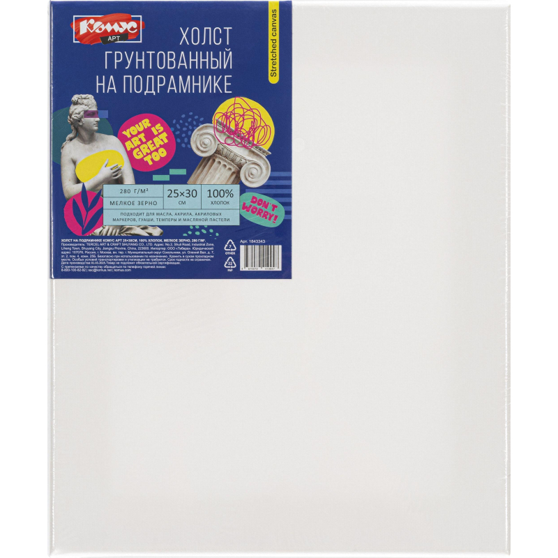 Холст на подрамнике Комус Арт 25х30см, 100% хлопок, мелкое зерно, 280 г/м2