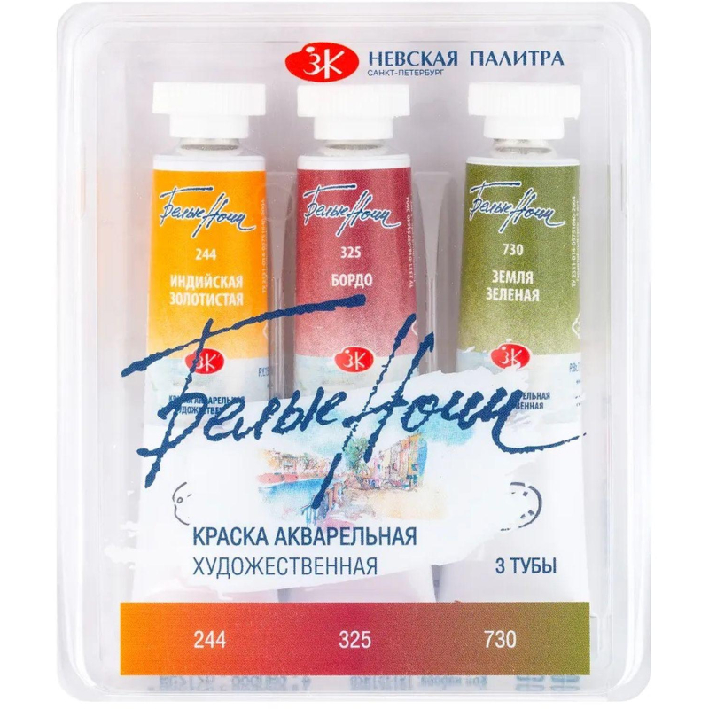 Краски акварельные Белые ночи Пион набор 3 цвета по 10 мл в тубахАкварельные краски Белые Ночи предназначены для профессиональных художников, создающих яркие и насыщенные работы. Эти краски подходят как для студийной работы, так и для пленэров. В состав входят тонкодисперсные пигменты и гуммиарабик. Краски безопасны, сертифицированы и соответствуют стандартам ASTMD-4236.Набор включает три цвета в тубах по 10 мл: индийская золотистая, бордо, земля зелёная. Тубы упакованы в коррекс. Продукт обеспечивает стабильность цвета и простоту использования.Краски обладают высокой концентрацией пигмента и прозрачностью, что позволяет работать тонкими лессировками. Они сохраняют насыщенность даже при значительном разбавлении водой. Этот набор идеален для создания живописных композиций с богатым многообразием оттенков благодаря чистым цветам.Продукт удобен для переноса благодаря компактному коррексу. Подходит для профессионалов и любителей. Высокая концентрация пигментов обеспечивает яркость и стабильность оттенков.