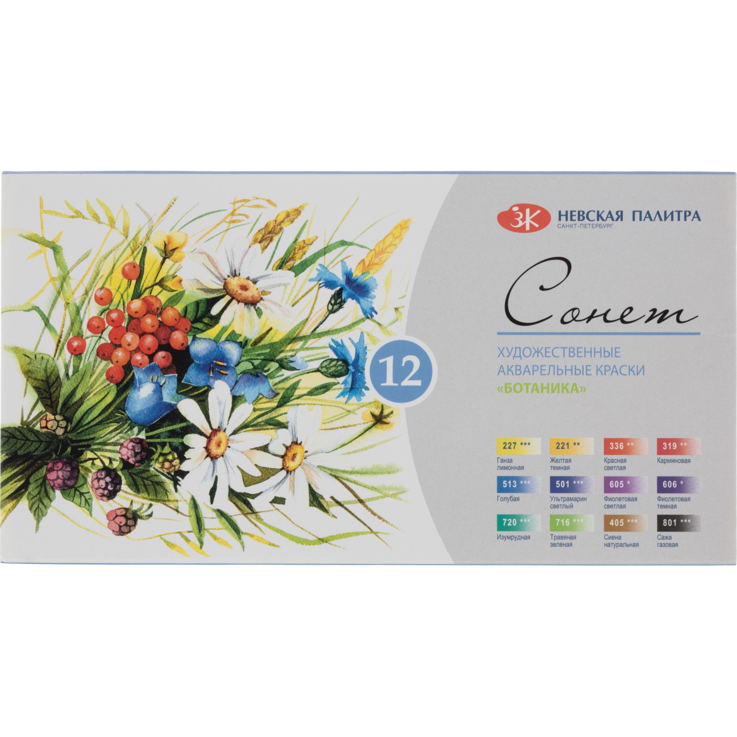 Краски акварельные Сонет Ботаника 12цв х 2,5мл в наб, кюветы 35411880