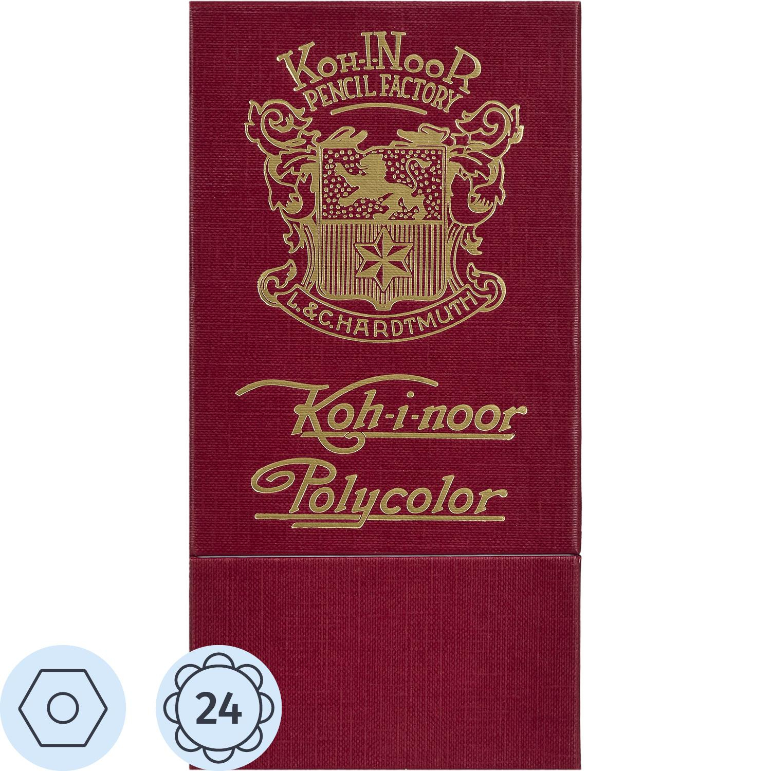 Карандаши цветные художественные классические Koh-i-Noor Polycolor Retro 24 карандаша 24 цвета шестигранныеНабор цветных карандашей Koh-i-Noor Polycolor Retro включает 24 карандаша шестигранной формы с мягким грифелем толщиной 3.8 мм. Карандаши имеют высокое содержание пигментов, обеспечивая укрывистость и высокую светостойкость. Они предназначены для художников, школьников и студентов. Набор выпущен к 230-летию компании Koh-i-Noor и упакован в премиум-пенал размером 95×45×184 мм. Корпус карандашей выполнен из кедра, диаметр корпуса составляет 7 мм.