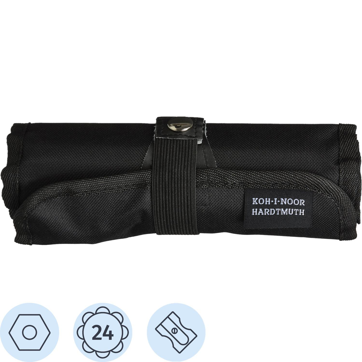 Карандаши цветные художественные классические Koh-i-Noor Polycolor 24 карандаша 24 цвета шестигранные Карандаши цветные художественные классические Koh-i-Noor Polycolor в наборе из 24 штук. Шестигранная форма, длина корпуса: 175 мм, диаметр корпуса: 7 мм. Грифель толщиной 3.8 мм, укрывистые, с высоким содержанием пигментов, обладают высокой светостойкостью и смешиваемостью до 8 слоёв. В комплект входят точилка и ластик. Упакованы в текстильный пенал-рулон с кнопкой, размер упаковки 205×70×80 мм. Рекомендуются для художников, школьников и студентов.