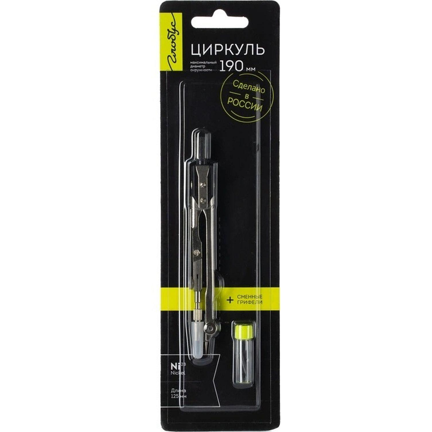 Готовальня Глобус (корпус черный, ЦЧП-60Б)Готовальня предназначена для выполнения точных геометрических построений в старших классах и при учёбе в колледжах и вузах. Подходит для студентов, учащихся технических направлений и всех, кто работает с чертежами и схемами. В комплект входит циркуль длиной 125 мм с несгибаемой штангой. Корпус выполнен из прочного стального сплава с никелированным покрытием и латунной вставкой под карандаш. Благодаря надёжной конструкции циркуль устойчив к износу и обеспечивает точность линий. В набор также входит пенал с запасным грифелем. Готовальня поставляется в блистерной упаковке с европодвесом. Корпус изделия чёрного цвета. Комплект удобен для повседневного использования и компактного хранения.