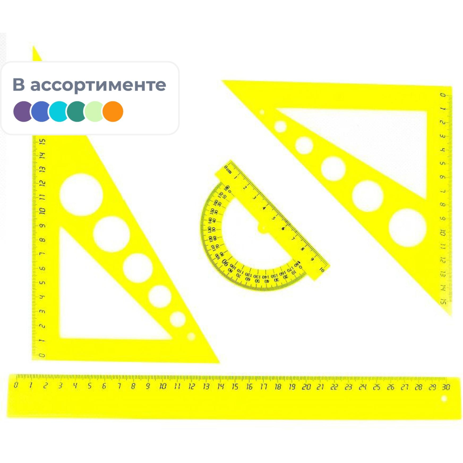 Набор большой: линейка 30см, угольники 21см и 16см, трансп-р 10см,цветасс.