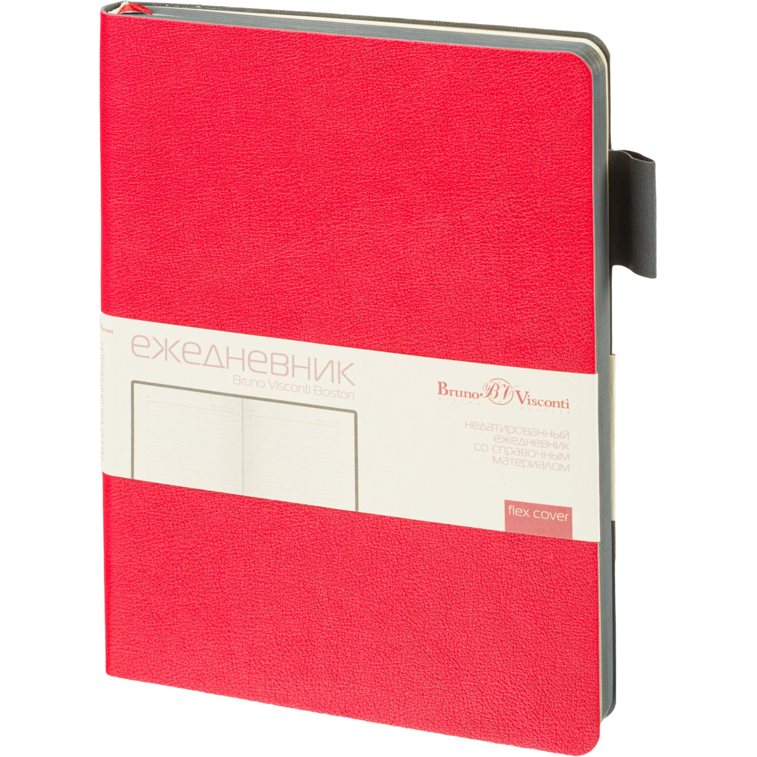 Ежедневник недатированный Bruno Visconti Boston искусственная кожа А5 136 листов красный (серый обрез)Ежедневник Boston от Bruno Visconti — это стильный и элегантный аксессуар, который привлечёт внимание своим изысканным дизайном. Ярким элементом являются двойное ляссе и цветной обрез, которые придают изделию неповторимый стиль. Обложка из искусственной кожи красного цвета с шероховатой фактурой выглядит благородно, а скруглённые уголки и крашеный обрез придают ежедневнику утончённый вид.Внутренний блок состоит из 136 листов (272 страницы) тонированной офсетной бумаги плотностью 90 г/кв.м. с линейкой, что делает его удобным для ежедневных записей. Печать выполнена в два цвета, придавая ежедневнику сдержанный и профессиональный вид. Включает 21 страницу справочной информации.Тип крепления — сшивка. Ежедневник также оснащён закладкой-ляссе и петлёй под ручку для удобства. Подходит для персонализации, что делает его отличным выбором для корпоративных нужд.