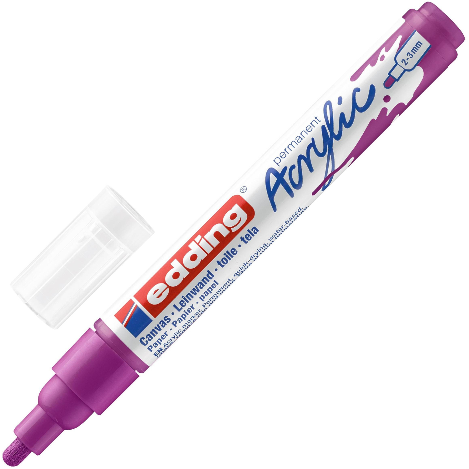 Маркер акриловый Edding 5100/910 фиолетовый (толщина линии 2-3 мм) Акриловый маркер Edding 5100 — яркий представитель акриловой линейки Edding. Акриловые маркеры Edding — целый набор инструментов для живописи. Чернила содержат высокопигментированную светостойкую и перманентную акриловую краску на водной основе. Созданы для рисования как на бумаге или картоне, так и на холсте. Вы получите эффект настоящих красок, но в более удобной форме маркера. Благодаря своему круглому наконечнику с шириной штриха в 2-3 мм он представляет собой подходящий продукт для создания как достаточно тонких чётких линий, так и крупных форм. Цвет: ягодный.