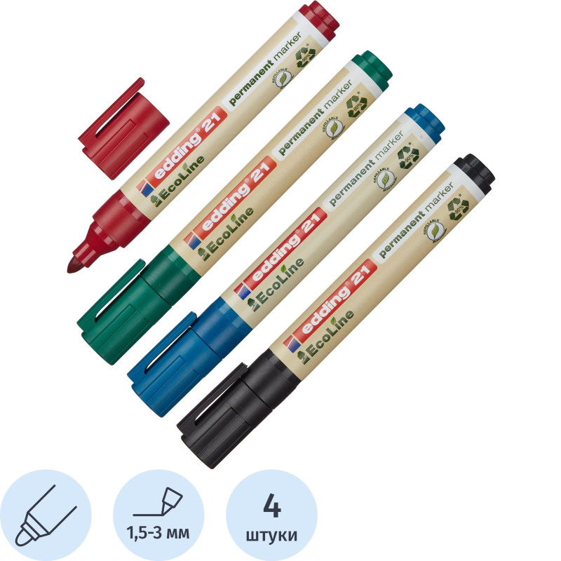 Набор маркеров перманентных EDDING ECO E-21/4S 4шт/уп 1,5-3мм кругл.наконеч