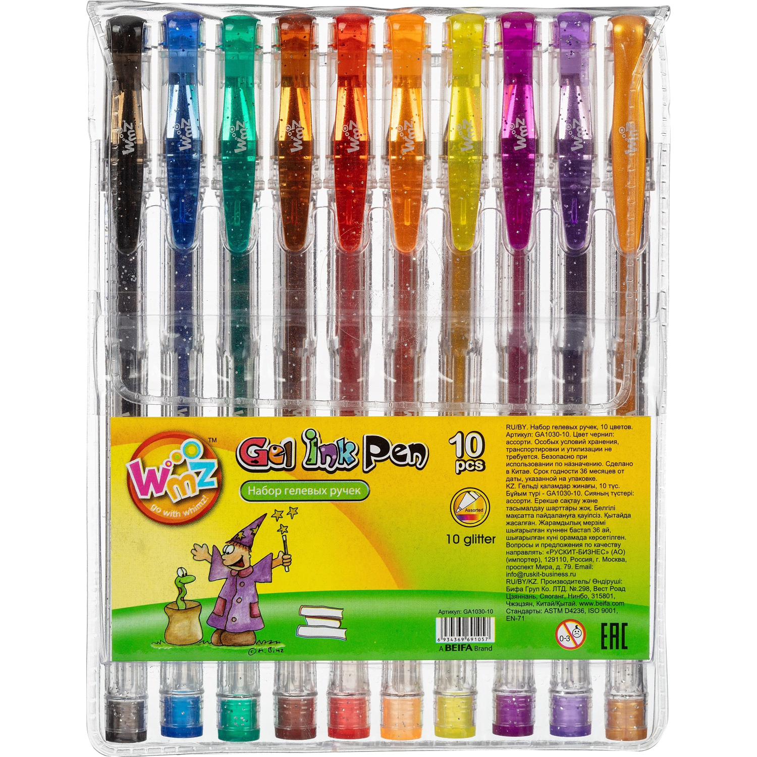Набор гелевых ручек 10 цв. с блестками PVC GA 103000 0,7мм