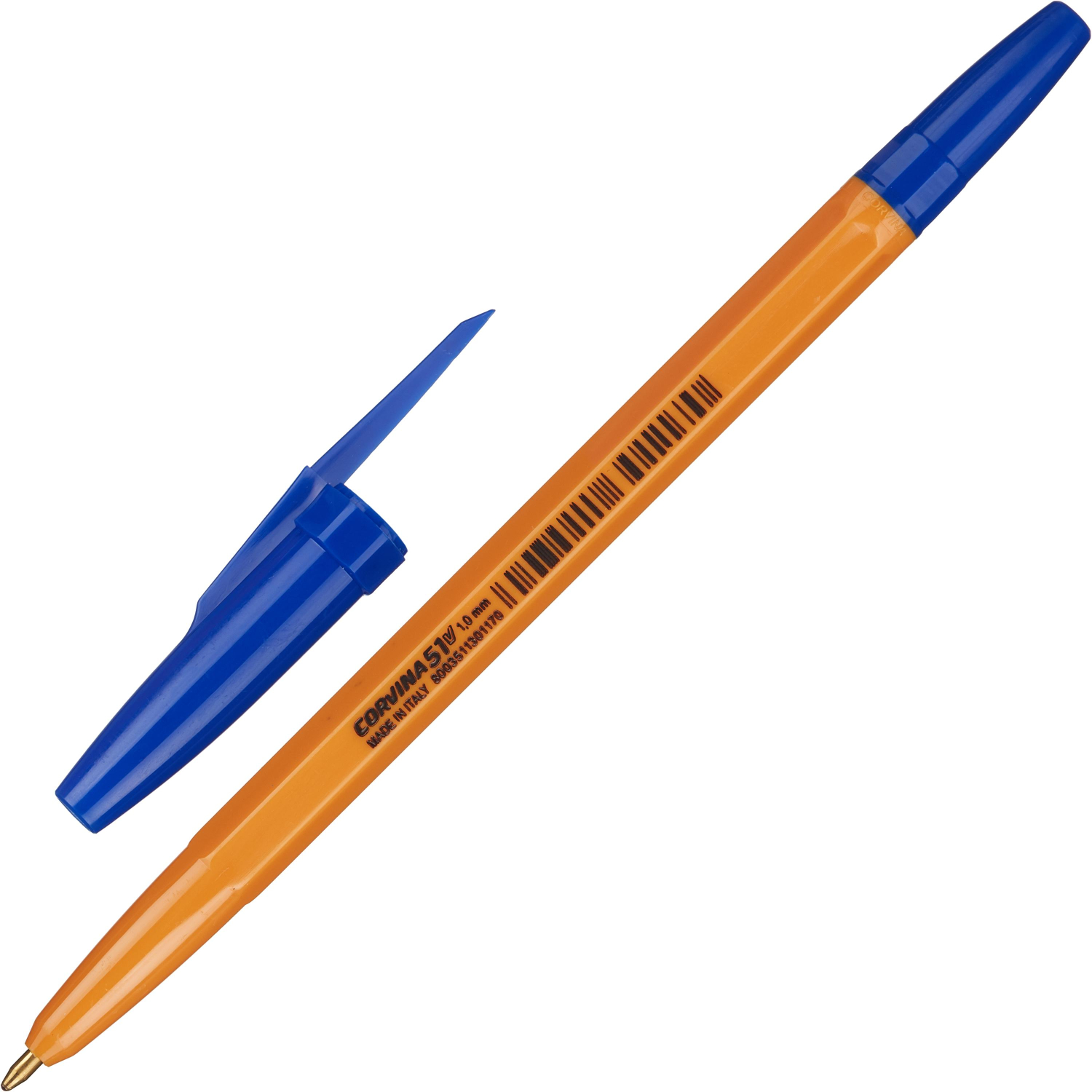 Ручка шариковая Corvina 51 Vintage. Цвет чернил: синий, желтый пластиковый корпус. Толщина линии письма — 0,7 мм. Диаметр шарика — 1 мм. Колпак с клипом. 50 штук в картонной коробке. Цвет колпака и кончика соответствует цвету чернил. Штрих-код на корпусе.