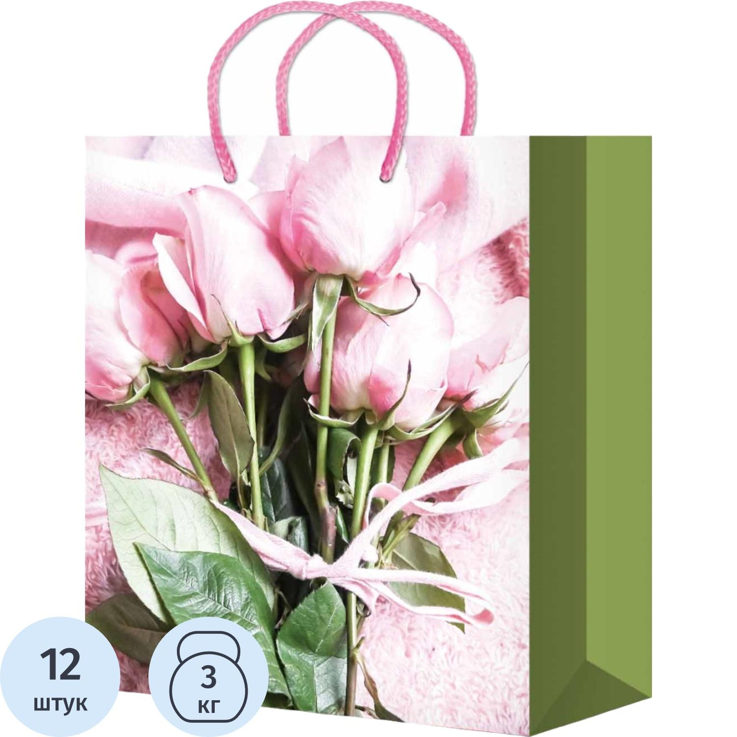 Пакет подарочн. с глянц.ламинацией 22x31x10см Розовые розы,157г ППК-4443