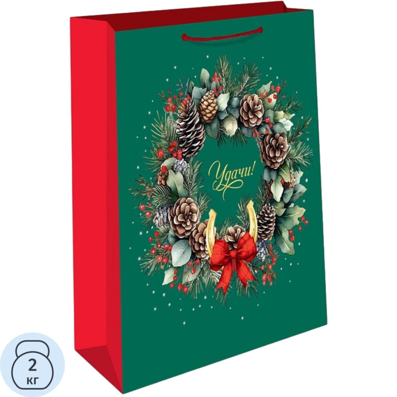 Сумка подарочная ламинированная Арт Дизайн Новый год (32×26×12 см, 0193.645к) Подарочная новогодняя сумка размером 32×26×12 см, изготовлена из бумаги плотностью 170 г/м² и дополненный стойкой к износу ламинацией. Цветовая гамма: доминирующий зелёный цвет лицевой стороны, боковые стенки насыщенного красного цвета, что подчёркивает новогоднюю тематику и придаёт упаковке стильный вид. Вес материала обеспечивает прочность и презентабельность, а вместительность и петлевые ручки делают сумку удобной для подарков любого формата. Подходит для новогодних подарков, максимальная нагрузка до 2 кг.