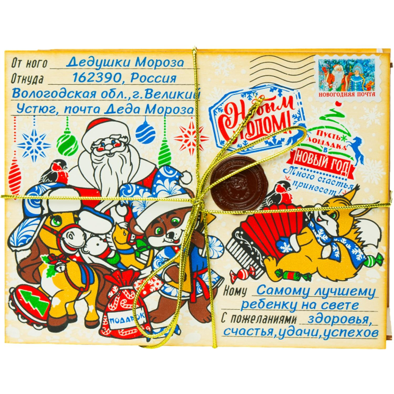 Новогодний сладкий подарок Посылка из леса Фанера 1000 грамм, K074