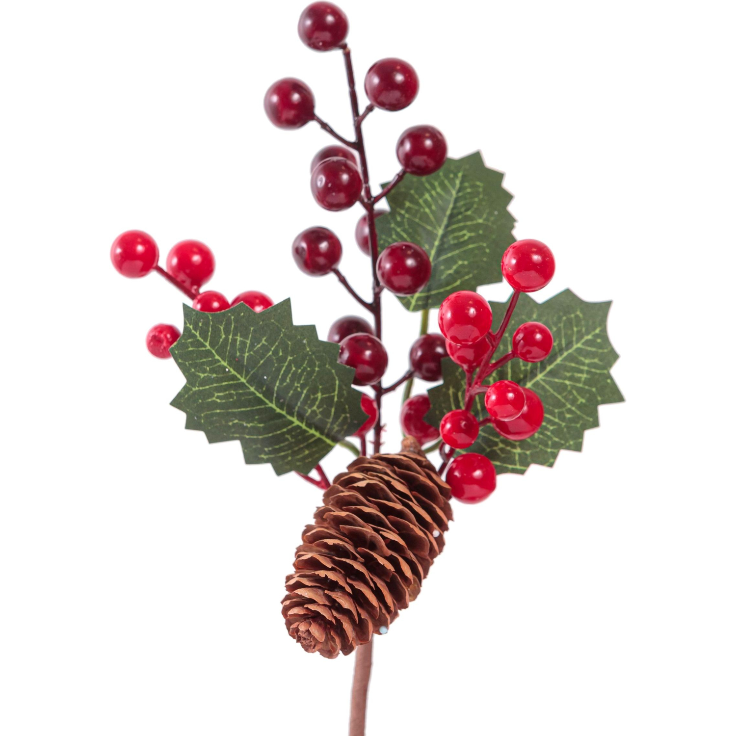 Украшение Magic Time Ветка с сосновой шишкой пластикВолшебство зимнего леса в миниатюре. Эта изящная ёлочная веточка, украшенная шишкой и красными ягодами, создаст уютную и праздничную атмосферу в вашем доме. Идеальное дополнение к традиционному новогоднему декору.Размер: 26×15×6,5 см.