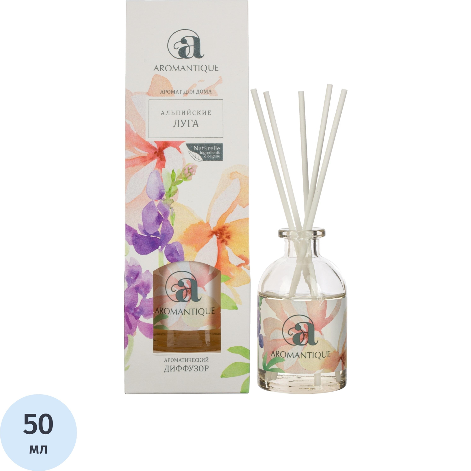 Аромадиффузор Aroma Harmony Альпийские луга 50 мл Безопасный. Экологически чистый. Натуральный. Является прекрасной альтернативой ароматизированным спреям.Описание аромата: игристый аромат, грейпфрут, лимон, имбирь, мята перечная, ромашка, липа, жасмин, миндаль, белый шоколад.В комплект входят ротанговые палочки, благодаря которым аромат распространяется в помещении.Ароматический диффузор рассчитан на помещение до 15 кв.м, интенсивность аромата регулируется количеством палочек. Объём — 50 мл.