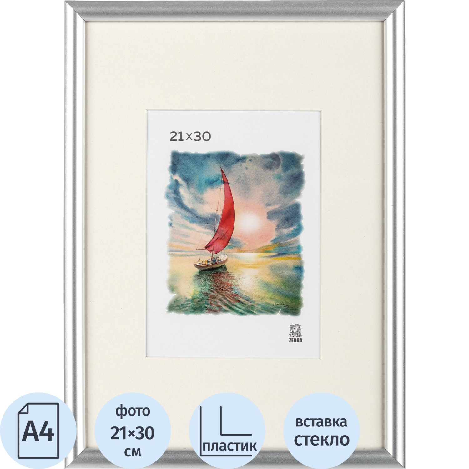 Рамка с паспарту Зебра А4 21×30 см пластиковый багет 14 мм серебристая идеально подойдет для выставки фотографий, творческих работ, дипломов и сертификатов. Эта рамка сочетает в себе элегантный дизайн, прочные материалы и удобство использования. Серебристый цвет багета придает изделию стильный и универсальный вид, который легко вписывается в любой интерьер. Стеклянная вставка обеспечивает надежную защиту вашего изображения, а съемная вставка делает замену фото быстрой и простой. Рамка «Зебра» идеально подходит для подарка или для оформления вашего дома или офиса. Позвольте вашим ценным воспоминаниям и достижениям блеснуть в этой стильной и функциональной рамке с паспарту. Материал багета: пластик. Материал вставки: стекло. Материал задника: картон. Толщина багета: 14 миллиметров. Ширина багета: 14 миллиметров. Цвет багета: белый. Вставка съемная. Тип размещения: настенный. Тип крепления задника: лепестки. Размер фото: 21×30 сантиметров. Размер изделия: 23×32 сантиметров. Упаковка: пленка.