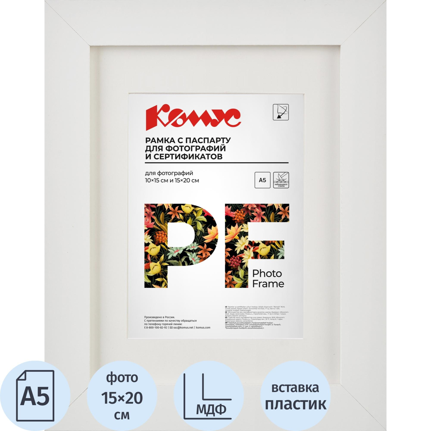 Рамка с паспарту Комус (Attache) А5 15×20 см МДФ багет 18 мм белаяРамка с паспарту Комус А5 белая- элегантное обрамление для ваших фотографий. Белый багет шириной 18 мм придает рамке классический и изысканный вид, гармонично сочетаясь с любым интерьером. Паспарту визуально выделяет фотографию, добавляет ей глубину и объем. Рамка комплектуется ножкой-подставкой для удобного размещения на столе. Характеристики: Размер фото: 15×20 см. Материал рамки: МДФ. Материал задника: картон. Тип упаковки: термоусадочная пленка. Страна производитель: Россия. Рамка Комус с паспарту — это прекрасный способ подчеркнуть красоту ваших фотографий и создать уютную атмосферу в вашем доме. В рамках ребрендинга производится перевод данного артикула с сохранением всех потребительских характеристик товара. На переходный период допускается поставка данной продукции в двух вариантах дизайна.