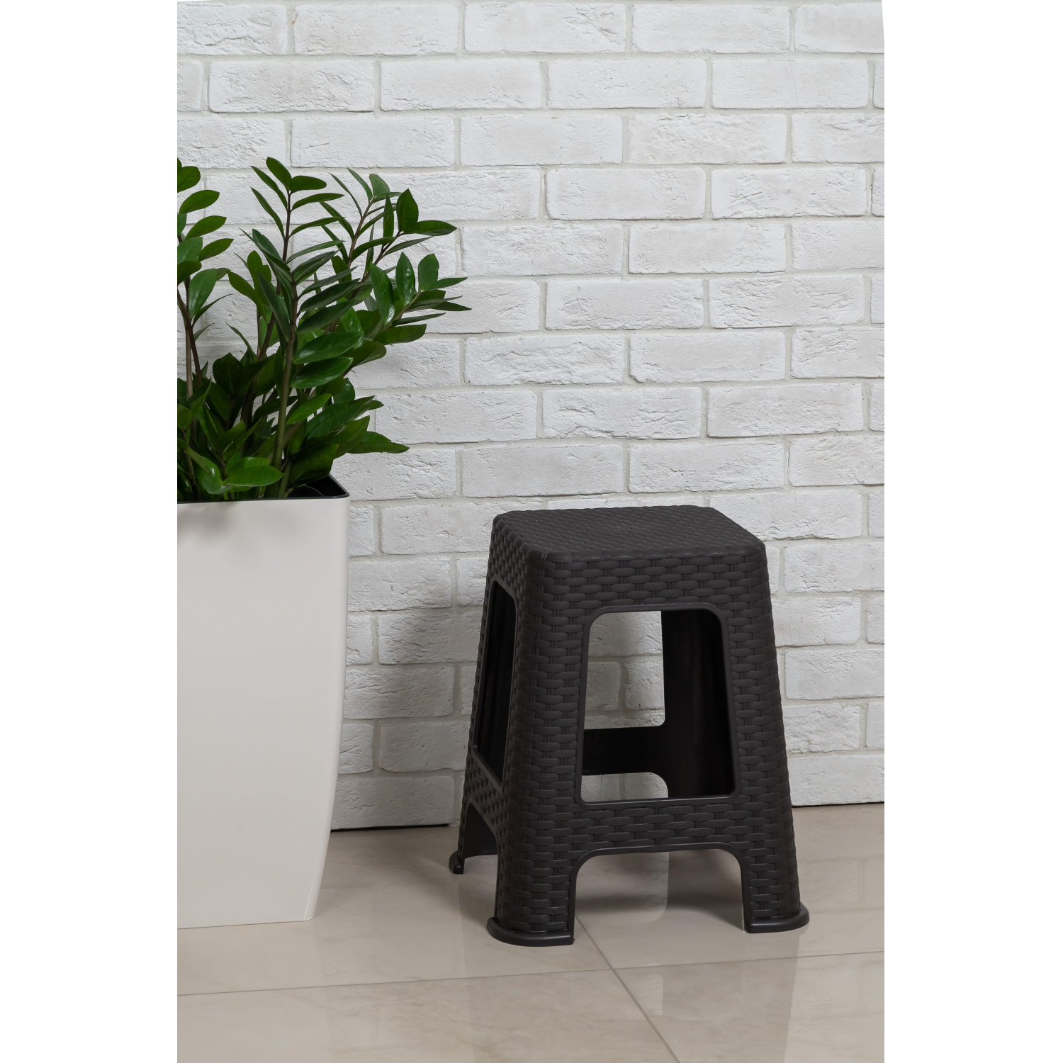 Табурет Ротанг квадратный коричневый (полипропилен)Плавный ажурный рисунок на этой пластиковой табуретке придаёт ей изящный и элегантный вид, а имитация натурального плетения серии «Ротанг» добавляет дополнительный шарм. Сочетание этих двух элементов делает эту табуретку идеальным дополнением к любому интерьеру. Она будет прекрасно выглядеть в гостиной, спальне, кухне, на балконе или даже в ванной комнате.Изображения товаров на сайте не могут гарантировать точную цветопередачу.