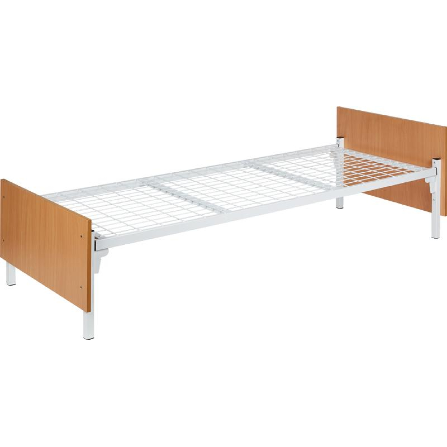 Кровать одноярусная Бытовая на метталическом каркасе. Каркас, труба полуовальная 40×25 мм. Опоры (ножки кровати) круглая труба d38 мм. Размер спального места 900×1900 мм. высота от пола до лежака — 358 мм. Сетка сварная, ячейка 65×1004 мм. Спинка выполнена из ЛДСП 16 мм. Цвет каркаса — белый (порошковое покрытие). Цвет спинок — бук. Изображения товаров на сайте не могут гарантировать точную цветопередачу.