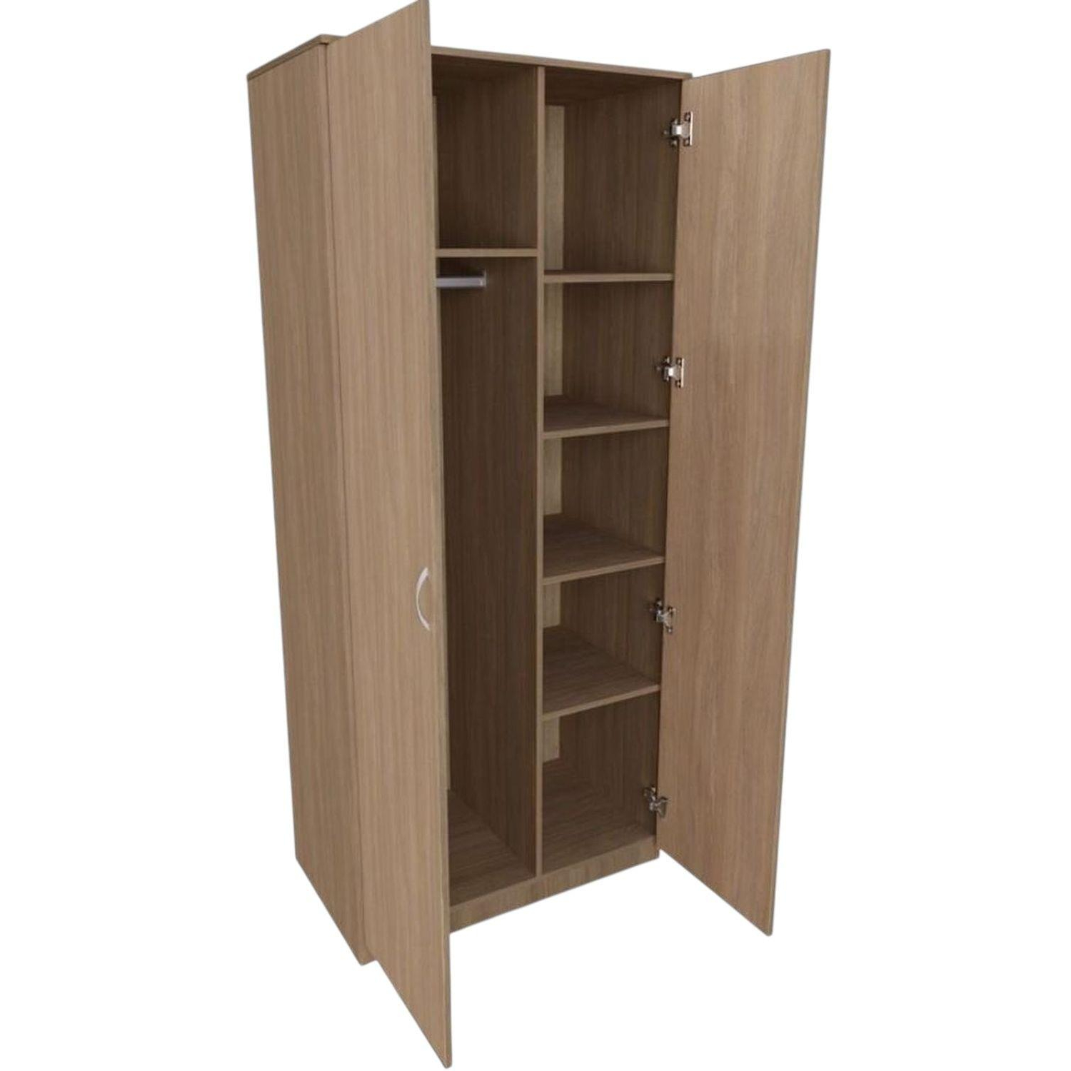 Внимание! Пожалуйста, проверяйте цвет изделия до начала сборки! Цвет на изображении товара в интернет-магазине или в печатном каталоге может отличаться от оригинала из-за особенностей цветопередачи. Шкаф для одежды двухстворчатый комбинированный. Материал изготовлен из ЛДСП. Верхний топ толщиной 16 мм с кромкой ПВХ толщиной 2 мм. Остальные детали толщиной 16 мм с кромкой ПВХ толщиной 0,4 мм. Цвет кромки в тон мебели. Петли без доводчика. Ручка-скоба металл, цвет — матовый хром. Регулируемые по высоте опоры. Материал и толщина топа и его кромки — ЛДСП толщиной 16 мм, кромка ПВХ толщиной 2 мм. Материал и толщина каркаса и его кромки — ЛДСП толщиной 16 мм, кромка ПВХ толщиной 0,4 мм. Материал и толщина задней стенки — ХДФ толщиной 3 мм. Количество полок — 5 штук. Расположение штанги для одежды — параллельно задней стенки. Присутствуют регулируемые подпятники.
