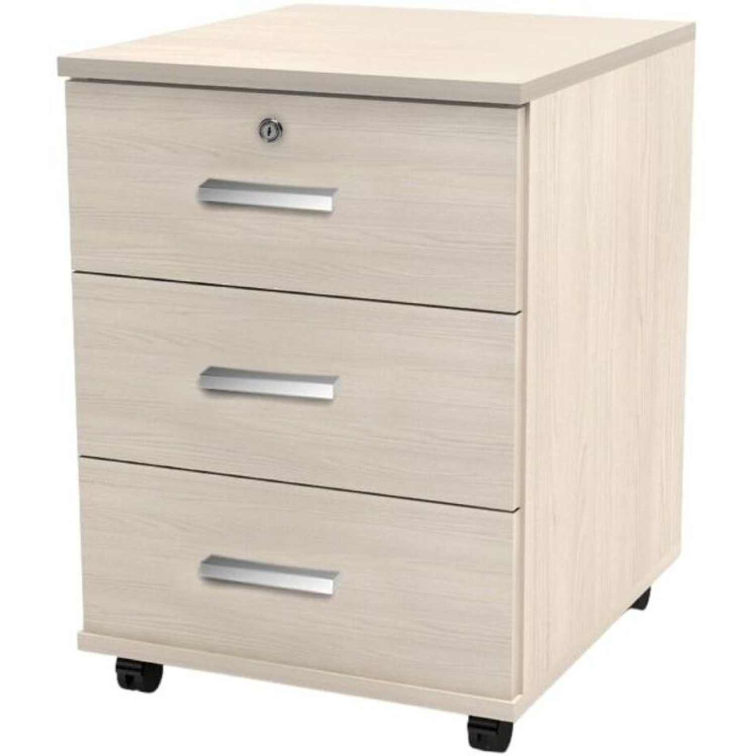 Внимание! Пожалуйста, проверяйте цвет изделия до начала сборки! Цвет на изображении товара в интернет-магазине или в печатном каталоге может отличаться от оригинала из-за особенностей цветопередачи.Тумба Канц ТК29.15 изготовлена из ЛДСП цвета дуб молочный. Кромки отделаны лентой из ПВХ для защиты от повреждений. Имеет три выдвижных ящика, самый верхний из которых запирается на ключ. Материал и толщина топа и кромки: ЛДСП 16 мм, ПВХ 0,50 мм. Материал и толщина каркаса и кромки: ЛДСП 16 мм, ПВХ 0,50 мм. Материал и толщина задней стенки: ХДФ 3,2 мм.