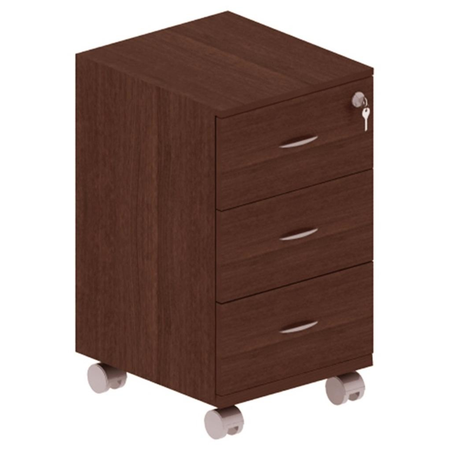 Внимание! Пожалуйста, проверяйте цвет изделия до начала сборки! Цвет на изображении товара в интернет-магазине или в печатном каталоге может отличаться от оригинала из-за особенностей цветопередачи.Подкатная тумба Форум/Статус установлена на колеса, что позволяет легко передвинуть ее в удобное место. Корпус цвета орех, изготовленный из ламинированных древесно-стружечных плит толщиной 18 мм, а толщина топа тумбы 25 мм. Материал безопасен для здоровья и окружающей среды. Кромки отделаны плоской ПВХ, толщиной 0,5 мм для защиты от повреждений. Тумба снабжена тремя выдвижными ящиками с центральным замком. Размеры тумбы 400×450×710 мм.