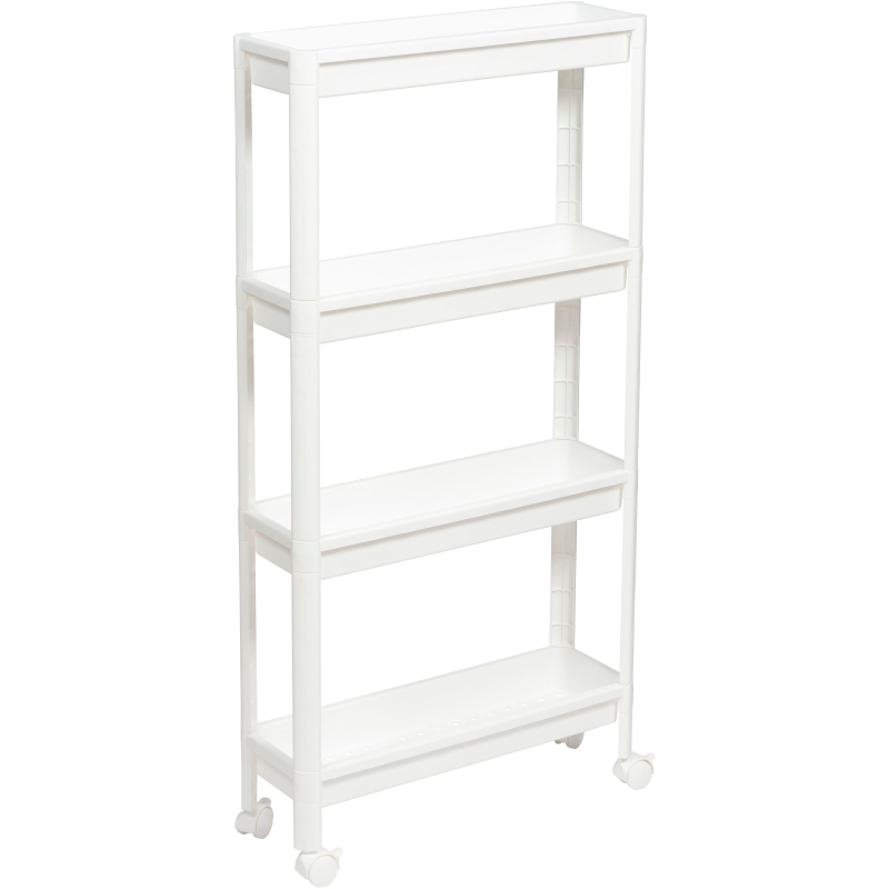 Этажерка М_VIKEA узкая 4-х ярусная на колесах, белый