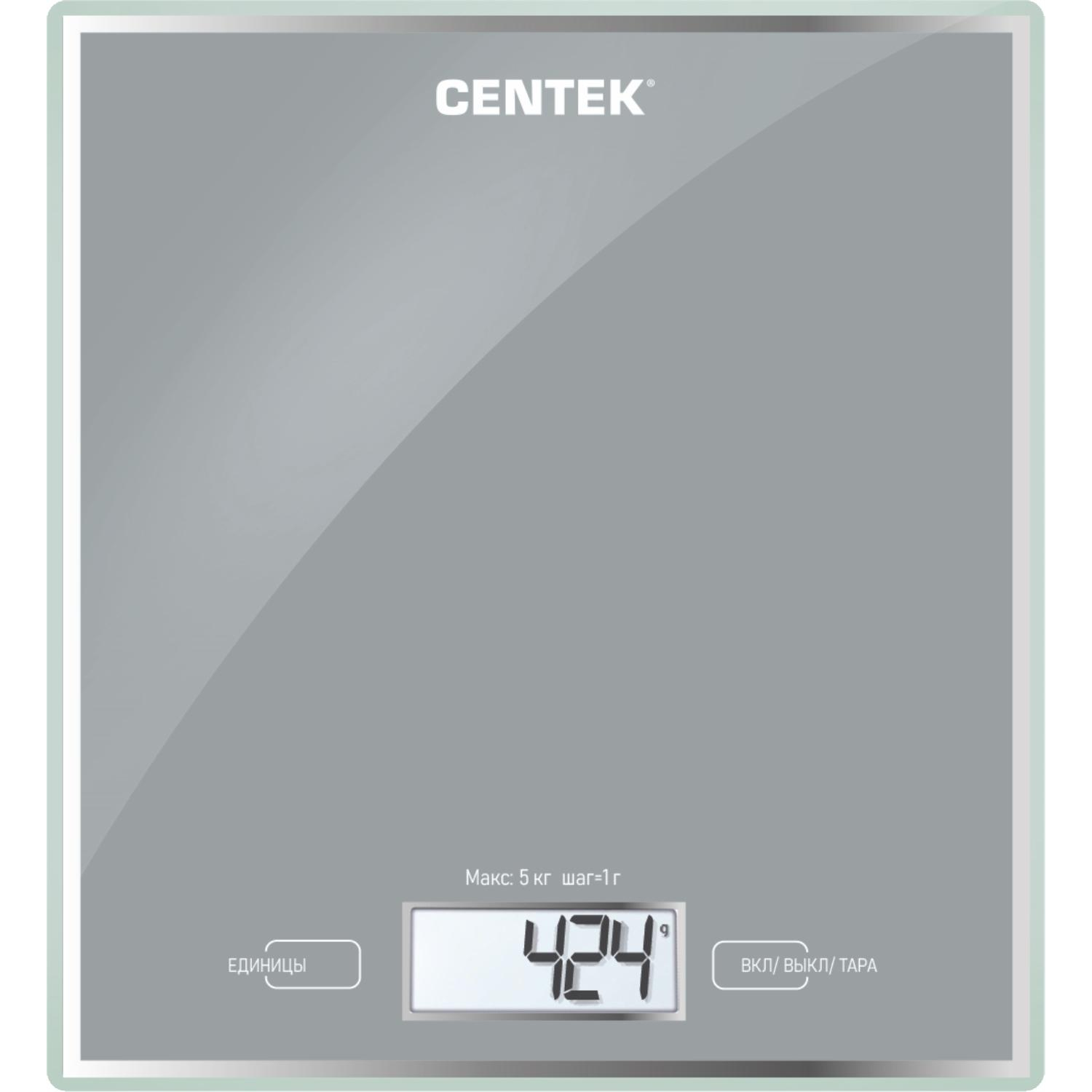 Весы Centek CT-2462 LCD,кухонные,190х200 мм, max 5кг, шаг 1г,серебристый