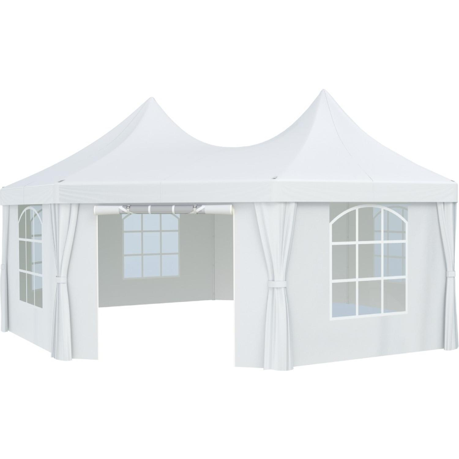 Внимание! Пожалуйста, проверяйте цвет изделия до начала сборки! Цвет на изображении товара в интернет-магазине или в печатном каталоге может отличаться от оригинала из-за особенностей цветопередачи. Тент садовый — практичное и популярное решение для использования на даче, пикниках, шашлыках и кемпинге. Крыша защитит от солнца. Тент садовый из полиэстера быстро и несложно монтируется и закрепляется с помощью растяжек. Материал крыша — полиэстер (240 г) с ПВХ покрытием, стенки (140 г) с окнами из ПВХ.
