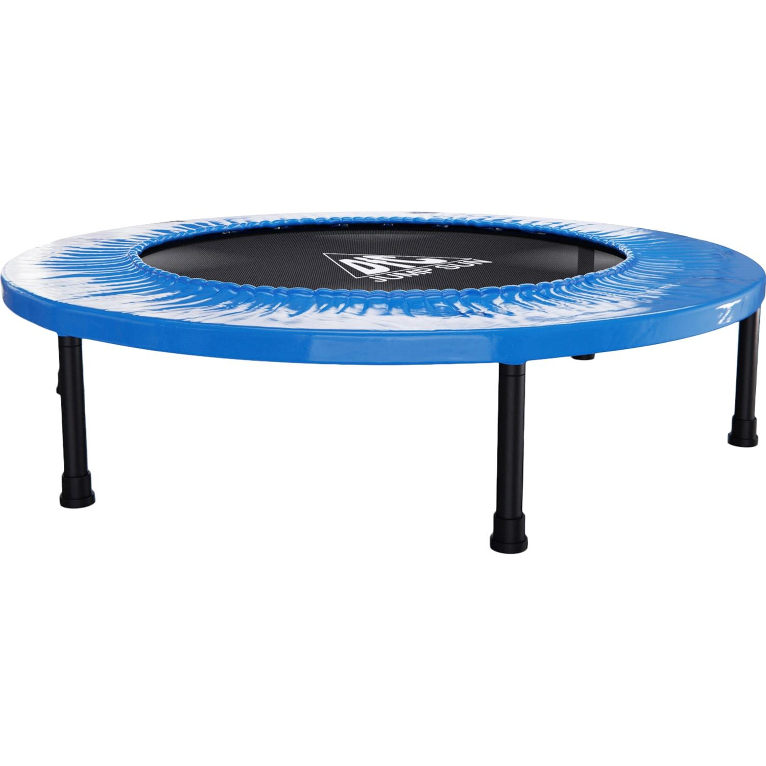 Батут DFC Jump Sun диаметр 92 см синийБатут предназначен для домашних тренировок и отлично подойдёт для кардионагрузок, укрепления мышц и улучшения общего самочувствия. Круглая модель диаметром 92 см занимает минимум места и позволяет проводить эффективные занятия даже в ограниченном пространстве.Прыжковое полотно выполнено из прочного материала перматрон, устойчивого к влаге и износу. Каркас изготовлен из стали и дополнен 28 пружинами, обеспечивающими надёжную амортизацию. Для устойчивости конструкция снабжена шестью съёмными ножками с противоскользящими накладками, которые одновременно защищают пол и снижают уровень шума. Диаметр прыжковой поверхности — 66 см, высота от пола — 22 см. Максимальная нагрузка — 80 кг. Вес изделия составляет 5,5 кг.