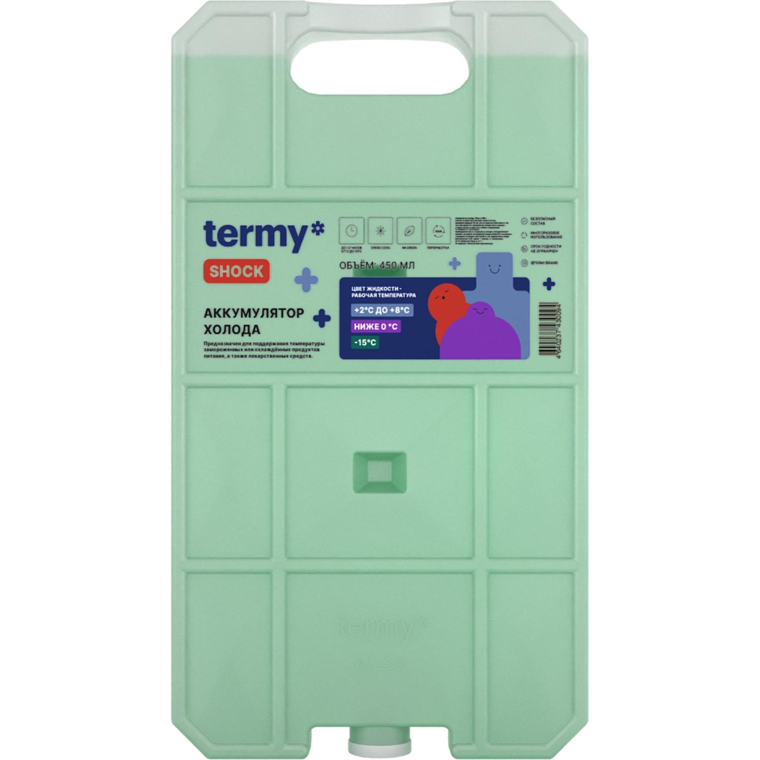 Аккумулятор холода Termy Shock 24.3×2.4×13.3 см 620 гАккумулятор холода водно-солевой предназначен для многоразового использования и поддержания температуры от 0 до −15°C. Время подготовки в морозильной камере от 10 часов при температуре не выше −15 градусов.Время работы от 7 часов (на открытом пространстве, не под прямыми лучами солнца, при комнатной температуре) до 24 (в термосумке, полностью заполненной замороженными продуктами, без открывания термосумки).