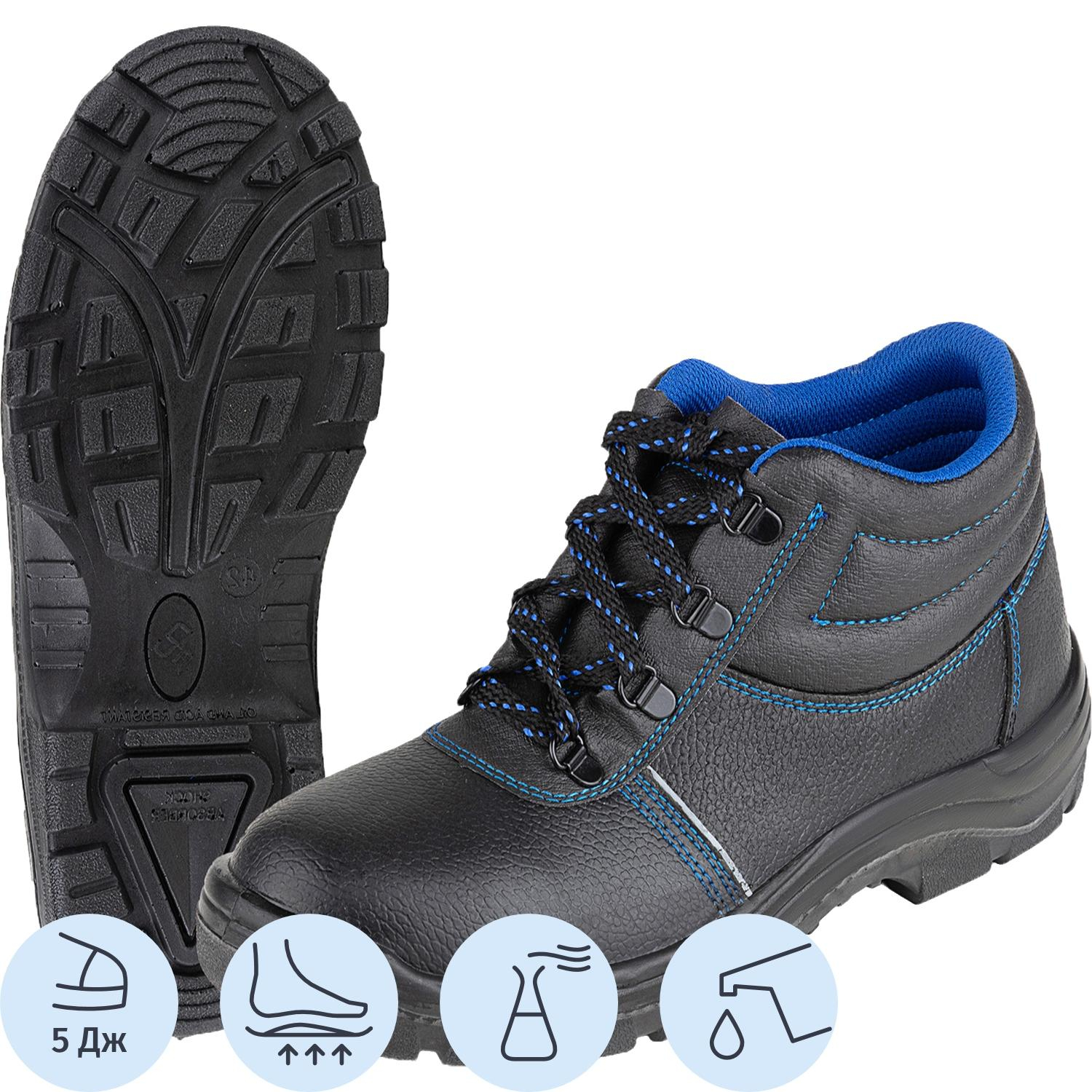Ботинки рабочие Prosafe 13 ПУ из кожи чёрные (размер 39). Модель подходит как для мужчин, так и для женщин. Обувь предназначена для использования в производственной сфере.Верх обуви выполнен из тисненой кожи для защиты ног от общих производственных загрязнений. Ботинки имеют настрочную союзку, задинку, глухой клапан и мягкий кант на текстильной подкладке-сетке из синтетических нитей. С внешней и внутренней сторон в местах настрачивания союзки проложен светоотражающий кант. Ботинки фиксируются на ноге с помощью шнуровки, проходящей через металлические петли. Изготавливаются с термопластичным подноском ударной прочностью 5 Дж.Подошва из полиуретана. Литьевой метод крепления подошвы. Стелька вкладная, анатомическая. Глубина профиля ходового слоя подошвы составляет 3,5 мм.Данная модель защищает от общих производственных загрязнений, кислот и щелочей, от механических повреждений, ударов, от нефти и нефтепродуктов. Соответствует стандартам ГОСТ Р 12.4.187-97, ГОСТ 12.4.137-2001, ТР ТС 019/2011.Цвет на изображении товара в интернет-магазине или в печатном каталоге может отличаться от оригинала из-за особенностей цветопередачи монитора.