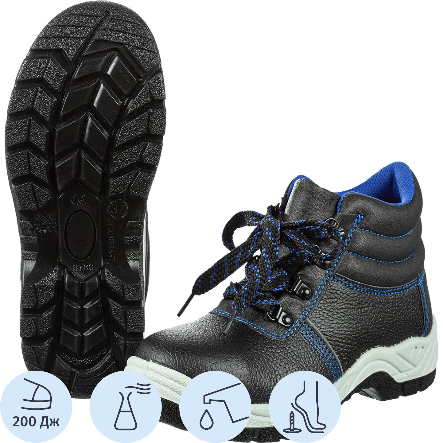 Ботинки рабочие ПУ-ТПУ из натуральной/искусственной кожи с металлическим подноском черные (размер 37). Подходят как для мужчин, так и для женщин. Универсальная модель для работы в летний и демисезонный период.Верх обуви комбинированный. Союзка и берец выполнены из натуральной кожи (юфть яловая толщиной 2,0 мм), а мягкий кант из искусственной кожи. Подкладка прочная, мягкая. Дышащая 3D-сетка прекрасно отводит влагу и обеспечивает воздухообмен, что позволяет ощущать комфорт в течение рабочего дня. Подносок металлический, гарантирующий защиту от ударных нагрузок силой до 200 Дж. Колодка специальной эргономичной формы обеспечивает комфорт даже при длительной эксплуатации.Подошва двухслойная полиуретан-термополиуретан (ПУ-ТПУ). Двухцветная: внутренний слой из облегченного и амортизирующего полиуретана, ходовой слой из более плотного термополиуретана. Обладает повышенной прочностью, защищает от кратковременного воздействия нагретых поверхностей (до +160°С) и обеспечивает защиту от агрессивных сред (МБС, КЩС). Имеет специальный протектор глубиной 4,5-5,0 мм, который эффективно препятствует скольжению.Обувь защищает от механических повреждений. Стелька вкладная, мягкая, амортизирующая на основе ЭВА, эффективно распределяет нагрузку по всей поверхности стопы. Мягкий кант и язычок выполнены из искусственной кожи, кант дублирован слоем поролона и превосходно защищает от внешних ударов. Конструкция язычка «глухой клапан» защищает стопу от попадания пыли, грязи и влаги внутрь обуви.Срок эксплуатации после выдачи обуви составляет 70 дней при соблюдении правил ухода, эксплуатации и хранения. Соответствует стандартам ГОСТ 12.4.033-77, ГОСТ Р 12.4.187-97, ГОСТ 12.4.137-2001, ТР ТС 019/2011.Цвет на изображении товара в интернет-магазине или в печатном каталоге может отличаться от оригинала из-за особенностей цветопередачи монитора.
