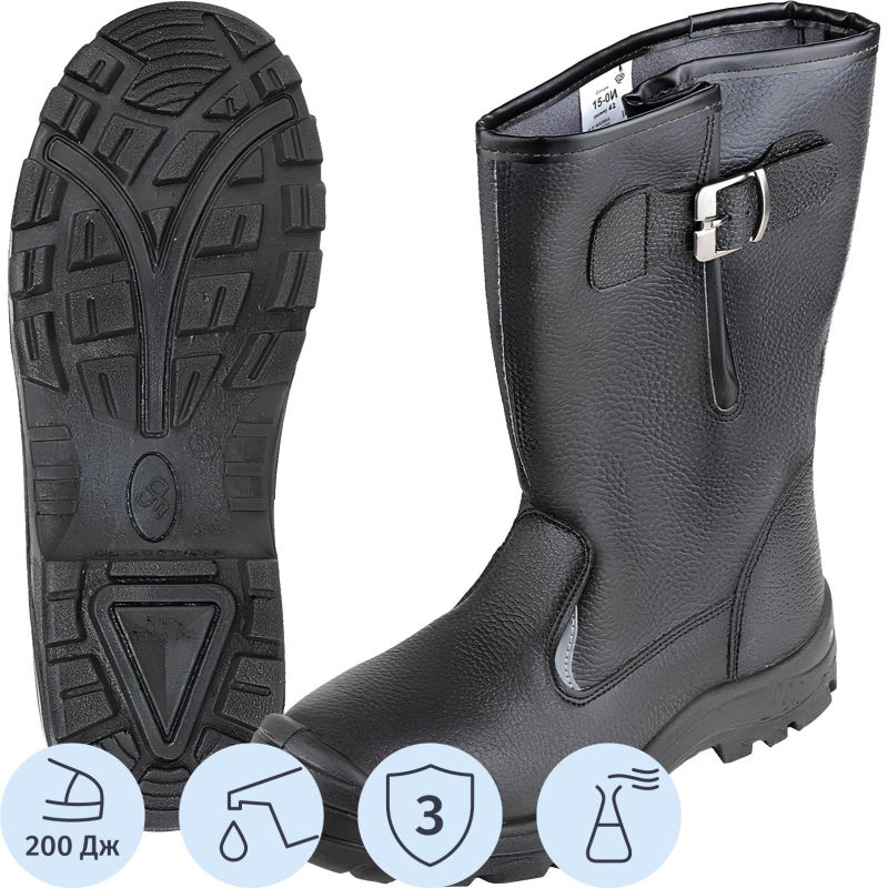 Сапоги рабочие модели 15-0И подойдут как для мужчин, так и для женщин. Выполнены в чёрном цвете. Размер 42. Обувь рекомендована к использованию в строительстве, озеленении территории, ЖКХ, промышленности, логистике, нефтегазовой промышленности.Регулируемое голенище для надежной фиксации и комфортного максимально плотного прилегания обуви к голени с помощью ремня и пряжки. Голенище изготовлено из кирзы, союзка и задинка — из кожи. Металлический подносок, ударной прочностью до 200 Дж. Подошва из однослойного полиуретана. Литьевой метод крепления. Модель бесподкладочная с вкладной формованной стелькой анатомической формы. Глубина профиля ходового слоя подошвы составляет 3.5 мм. Высота сапог — 26 см. Данная модель предназначена для защиты от общих производственных загрязнений, от кислот и щелочей, от механических повреждений, ударов, от нефти и нефтепродуктов. Соответствуют стандартам ТР ТС 019/2011, ГОСТ Р 12.4.187-97. Цвет на изображении товара в интернет-магазине или в печатном каталоге может отличаться от оригинала из-за особенностей цветопередачи монитора.