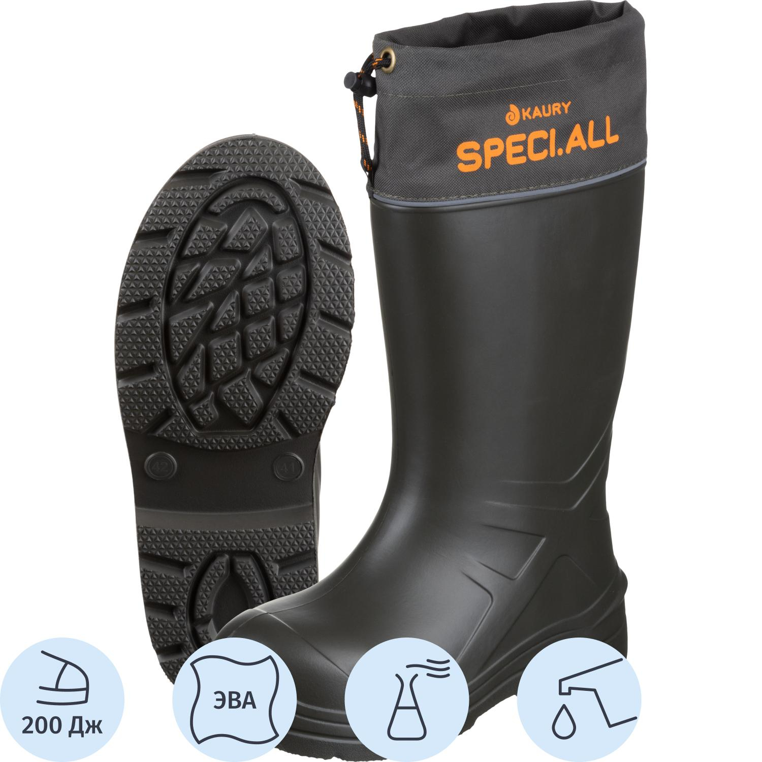 Сапоги рабочие Бизон ЭВА утеплённые с вкладным чулком оливковые с надставкой размер 47-48 подходят для мужчин и женщин. Предназначены для использования в производственных, складских и уличных условиях при низких температурах.Верх сапог изготовлен из вспененного полимера ЭВА методом литьевого крепления. Материал обеспечивает лёгкость, герметичность и устойчивость к влаге. Дополнительно установлена надставка с манжетой из плотной водоотталкивающей ткани со светоотражающей лентой, фиксируемой шнурком и стопором. В комплект входят два вида вкладного утеплителя, в составе которых — овечья шерсть, лён, металлизированная фольга и синтетическое волокно. Композитный подносок из поликарбоната выдерживает удар силой до 200 Дж и защищает носочную часть стопы от механических воздействий.Подошва изготовлена из ЭВА, обладающего хорошими амортизирующими свойствами и устойчивостью к истиранию. Внутри сапог предусмотрена кевларовая антипрокольная стелька, выдерживающая усилие до 1200 Н. Такая комбинация материалов снижает риск травм при ходьбе по острым поверхностям.Обувь устойчива к воздействию влаги, нефти и нефтепродуктов, щелочей, кислот, растительных и животных жиров. Подходит для эксплуатации в климатических поясах I, II, III, IV и особом. Сапоги защищают от ударов, проколов, скольжения, холода и общих производственных загрязнений.Модель соответствует требованиям ТР ТС 019/2011 и техническим условиям ТУ 15.20.32-001-79133603-2023.Рекомендуется использовать в условиях пониженных температур и на участках с повышенным риском загрязнений или механических повреждений. Срок хранения обуви — 24 месяца со дня изготовления. Гарантийный срок эксплуатации обуви — 60 дней с даты реализации продукции потребителю (для выявления заводских дефектов). Дата изготовления обуви указывается на маркировке каждой полупары обуви. Гарантия действительна при соблюдении условий транспортировки, хранения и ухода за изделием, а также использования изделия строго по назначению.