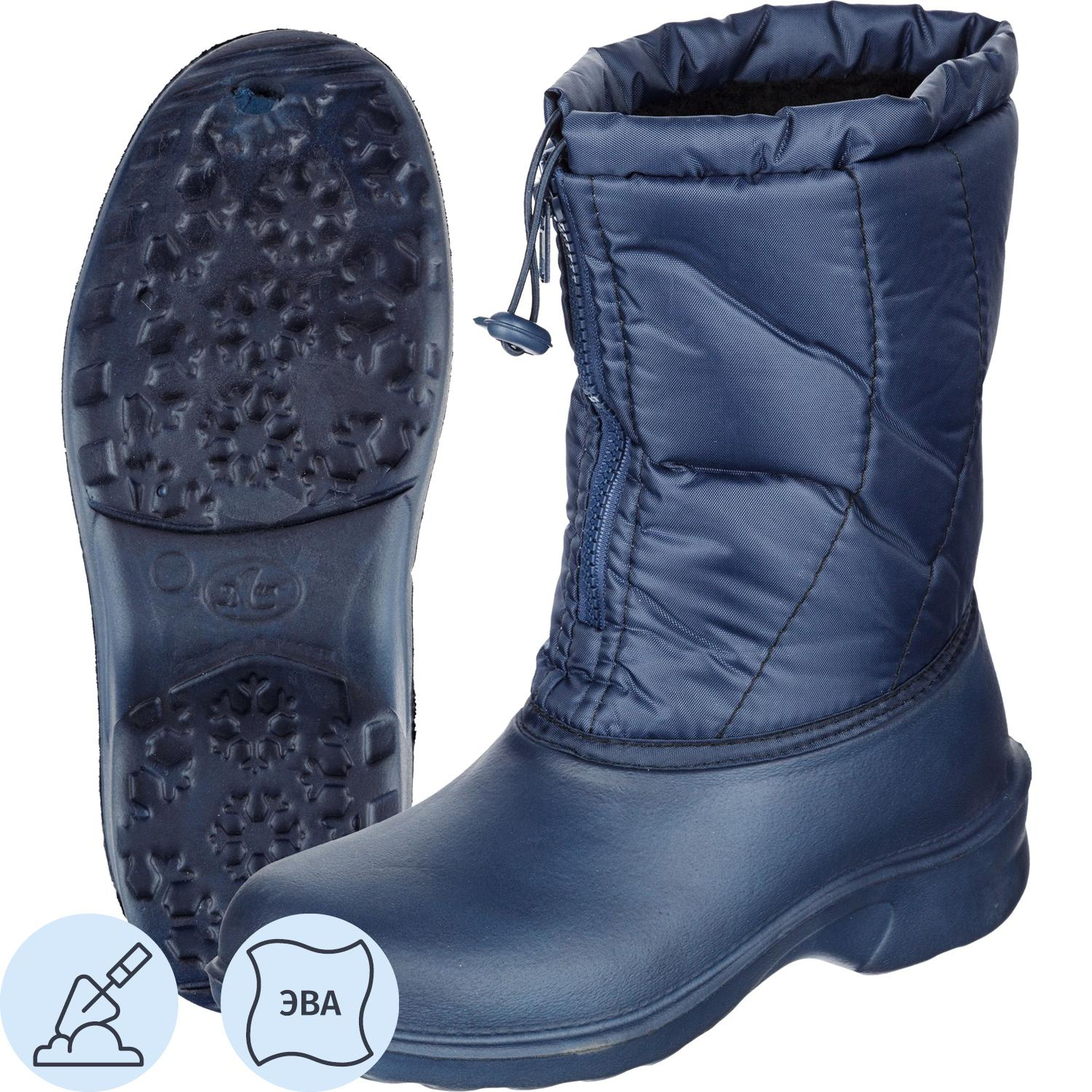 Сапоги женские 321 ЭВА комбинированные утепленные синие размер 39. Предназначены для защиты от общих загрязнений.Верх обуви выполнен из водоотталкивающей ткани, сдублированной поролоном и утеплителем из нетканого полотна с ворсом. Застежка на молнии обеспечивает удобство. Подошва изготовлена из ЭВА, легкая, упругая и морозостойкая до −40°C. Цельнолитой метод крепления обеспечивает прочность и долговечность.Высота голенища составляет 28 см. Подкладка для просушивания не вынимается. Обувь имеет нестандартную колодку и утеплитель, рекомендуется приобретать обувь на размер больше.Соответствует стандартам ГОСТ 26167-2005 и ТР ТС 017/2011.Гарантийный срок эксплуатации составляет 45 дней при соблюдении правил эксплуатации и хранения.