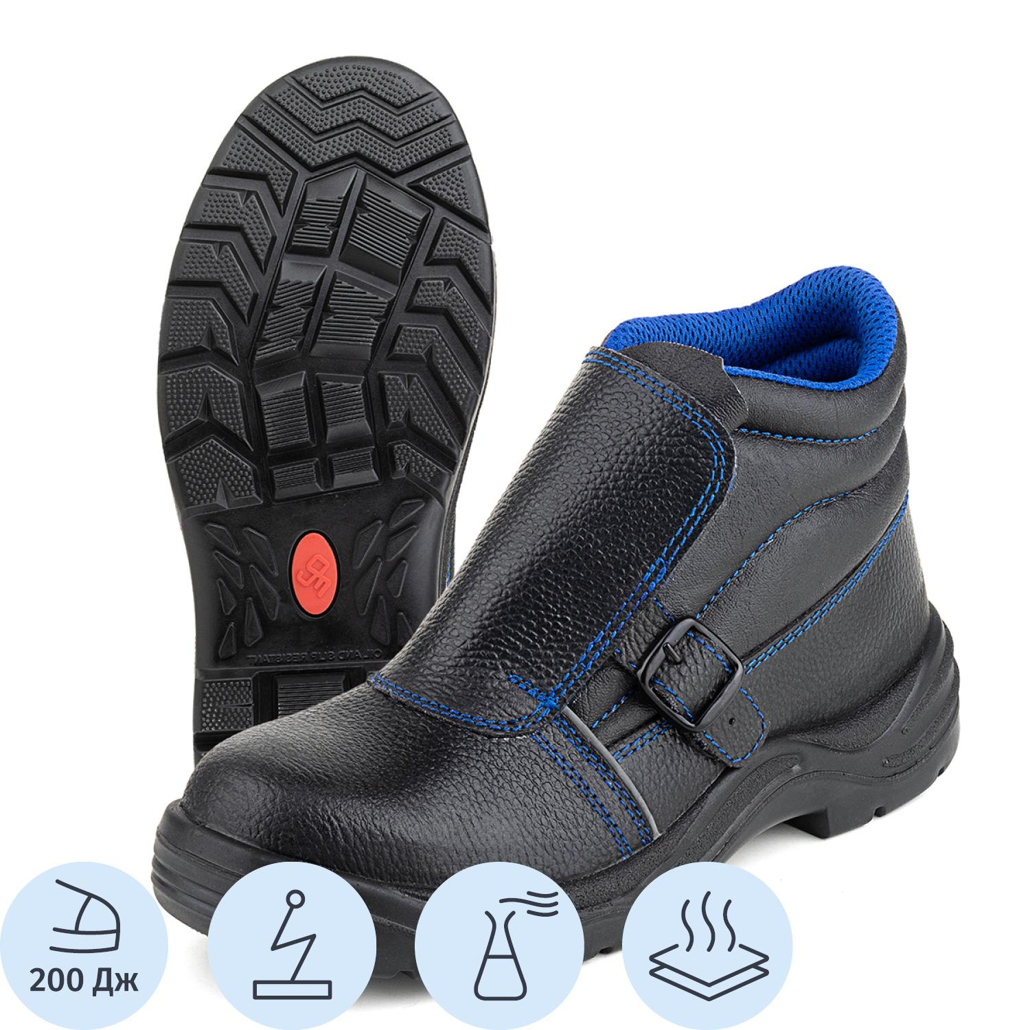 Ботинки сварщика мужские Prosafe 24 ПУ-нитрил из натуральной кожи с металлическим подноском чёрные (размер 41).Данная модель предназначена для использования в строительстве, промышленности, логистике и других отраслях, где необходима защита ног от общих производственных загрязнений.Верх ботинок изготовлен из прочной и долговечной натуральной кожи. Текстильная подкладка Камбрель обеспечивает воздухопроницаемость и гигроскопичность, предотвращая перегрев ног. Специальный защитный фронтальный клапан препятствует попаданию искр. Металлический подносок гарантирует защиту пальцев стопы от механических повреждений ударной прочностью до 200 Дж. Светоотражающие элементы повышают видимость работников в темное время суток.Подошва ботинок двухслойная, маслобензостойкая, литьевого метода крепления. Промежуточный слой из ПУ с амортизирующей вставкой в пяточной части обеспечивает комфорт при ходьбе. Ходовой слой из износостойкой термостойкой нитрильной резины. Текстильная съемная стелька дополняет комфортную конструкцию.Ботинки предназначены для защиты ног от общих производственных загрязнений, механических повреждений, ударов, от кислот и щелочей, от нефти и нефтепродуктов в отапливаемых помещениях и на открытом воздухе в летний период.Модель соответствует требованиям ТР ТС 019/2011, ГОСТ 12.4.137-2001, ГОСТ 12.4.032-95, ГОСТ 12.4.187-97, ГОСТ 12.4.177-89, что подтверждается сертификатом.Гарантийный срок на ботинки составляет 70 дней при соблюдении правил ухода и эксплуатации.Цвет на изображении товара в интернет-магазине или в печатном каталоге может отличаться от оригинала из-за особенностей цветопередачи монитора.