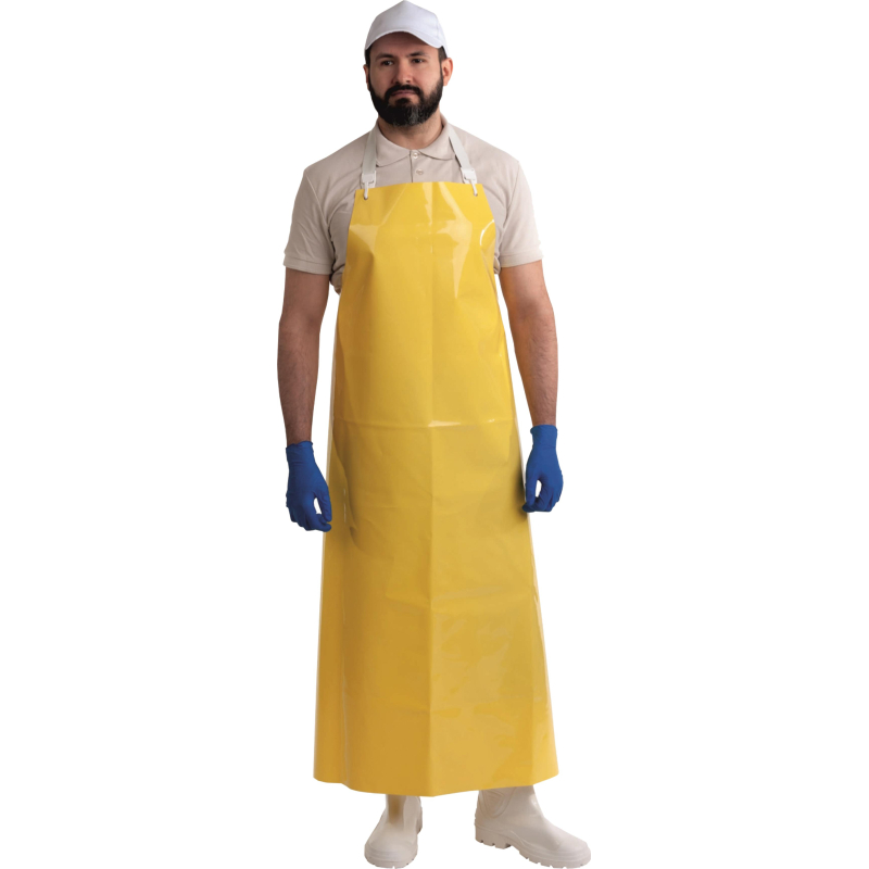 Фартук многоразовый уплотненный 90×130 см желтого цвета. Прочный, износоустойчивый и очень комфортный водонепроницаемый фартук. Предназначен для защиты от воды, общих производственных загрязнений. Возможно использование для защиты от животных и растительных масел и жиров, нетоксичных веществ, моющих средств. Длина — 90 см. Ширина — 130 см.