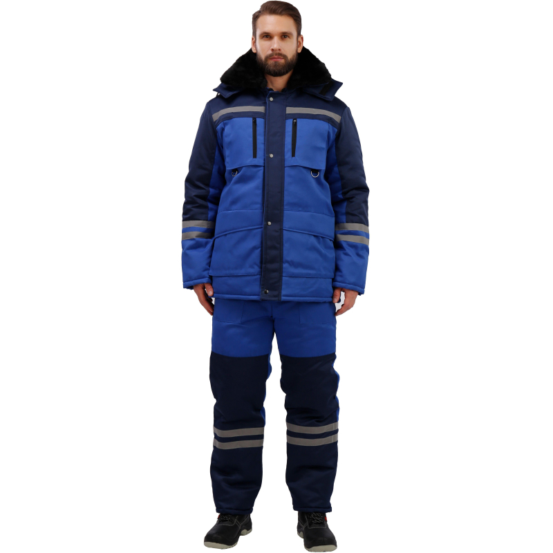 Костюм рабочий зимний мужской з03-КПК с СОП васильковый/синий (размер 52-54, рост 158-164) Рекомендован для использования в сельском хозяйстве, логистике, лёгкой промышленности, строительстве. Ткань верха: смесовая, 80% ПЭ, 20% хлопок, плотностью 190 г/кв.м Водоотталкивающая отделка. Материал подкладки 60 г/кв.м, 100% ПЭ. Утеплитель плотностью 360 г/кв.м (полочка, спинка) и 240 г/кв.м (рукава, полукомбинезон). Мех 600 г/кв.м, 100% ПЭ (воротник). Технология изготовления термоскреплённого синтепона (евросинтепона) позволяет использовать данный утеплитель для создания более тонких изделий с сохранением термозащитных свойств. Важными преимуществами утеплителя являются лёгкость и хорошая пластичность, что улучшает подвижность в костюме. А также исключение миграции волокна через ткани верха и подкладки за счёт скрепления слоев. Куртка прямого силуэта с застёжкой на молнию, две ветрозащитные планки на кнопках. Верхние накладные карманы с объёмом и входом на молнию; под карманами полукольца. Нижние объёмные накладные карманы с клапанами. Регулировка объёма куртки по линии талии со стороны подкладки при помощи шнура и фиксаторов. Съёмный капюшон на кнопках, с регулируемым объёмом по лицевому срезу при помощи шнура и фиксаторов. Воротник отложной со съёмным меховым воротником на пуговицах. Притачная утепляющая подкладка с накладным карманом на левой полочке и трикотажными напульсниками. Полукомбинезон с застёжкой на молнию. Карманы боковые накладные с наклонным входом, на правой задней половинке дополнительный карман накладной карман. Спинка с кулиской из эластичной ленты. Бретели с эластичной лентой и фиксируются на фастексы. Светоотражающая лента: ширина 25 мм, 150 кнд, в один ряд, на полочке, спинке. В два ряда на рукавах, полукомбинезоне. Температурный диапазон: до — 18°С. Климатический пояс: III. Класс защиты: 2. Защитные свойства: Тн — от пониженных температур З — от общих производственных загрязнений Соответствует ГОСТ 12.4.303-2016, ТР ТС 019/2011 Подобрать размер Цвет на изображении товара в интернет-магазине или в печатном каталоге может отличаться от оригинала из-за особенностей цветопередачи монитора.